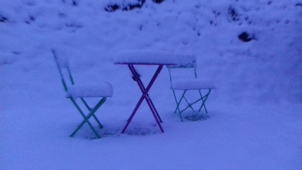 | Dire merci | Sinon samedi matin j'ai démontagné les poneys et le pré a fini d'être broyé : La petite prépare Skady pendant que j'enlève le fils ![]() ![]() On ne se rend pas compte de la pente mais pris depuis en-bas déjà un peu plus ![]() ![]() Super timing, ce matin on avait la neige : ![]() |