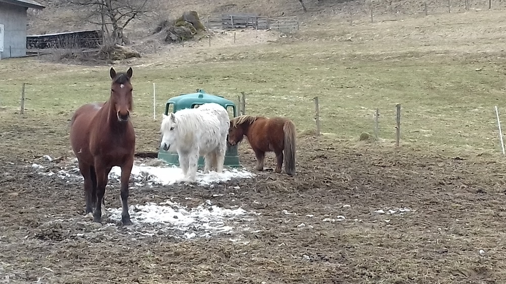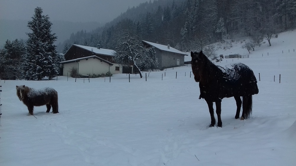 | Dire merci | J'ai ramené Daïka fin février. Vous savez juste avant la semaine de gros froid ![]() La pauvre, je l'ai fait passer d'un abris à 600 m d'altitude au pré (bon avec abris aussi où d'ailleurs madame apprécie s'y coucher) à 1000 m par un temps froid et humide (alors qu'habituellement, chez nous c'est froid mais sec). Bref j'ai opté pour une petite couverture le temps de passer cette mauvaise semaine. J'ai dû aussi me trimbaler les 100 L d'eau journalier à monter au pré parce que mes tonnes étaient gelées. C'était vraiment la semaine idéale pour la ramener mais fin février on n'a pas -15 °C pendant 10 jours normalement ![]() En ce temps là mon pré n'avait pas trop morflé : ![]() Quand tu veux prendre une photo avec un pot de colle ![]() Message édité le 31/03/18 à 08:19 Message édité le 31/03/18 à 09:13 |