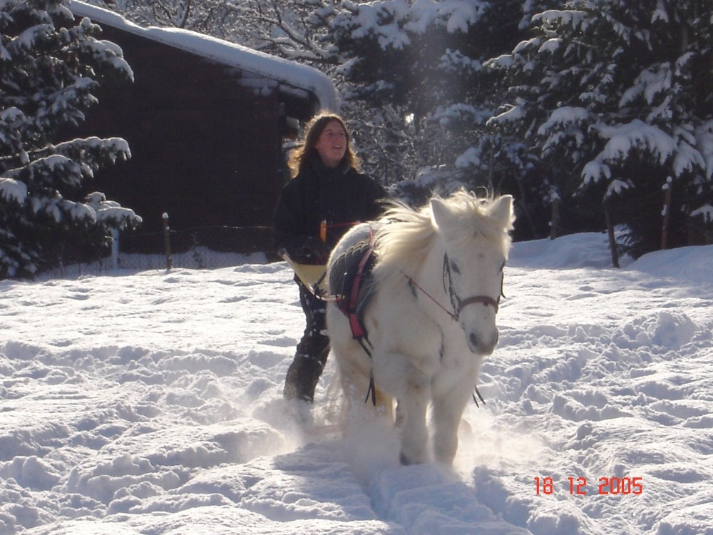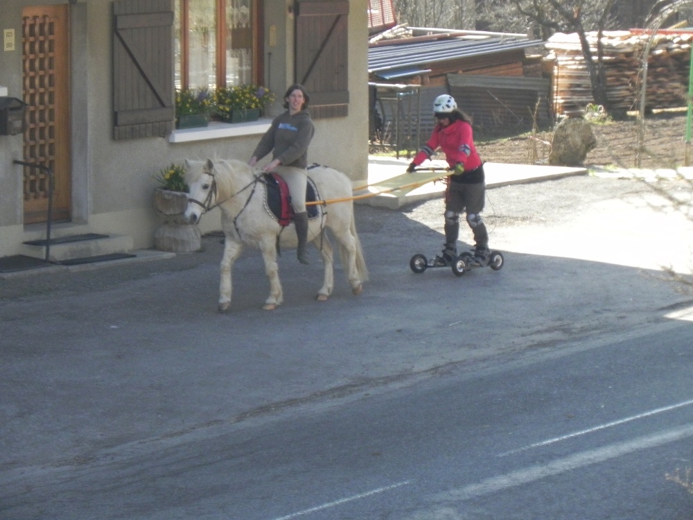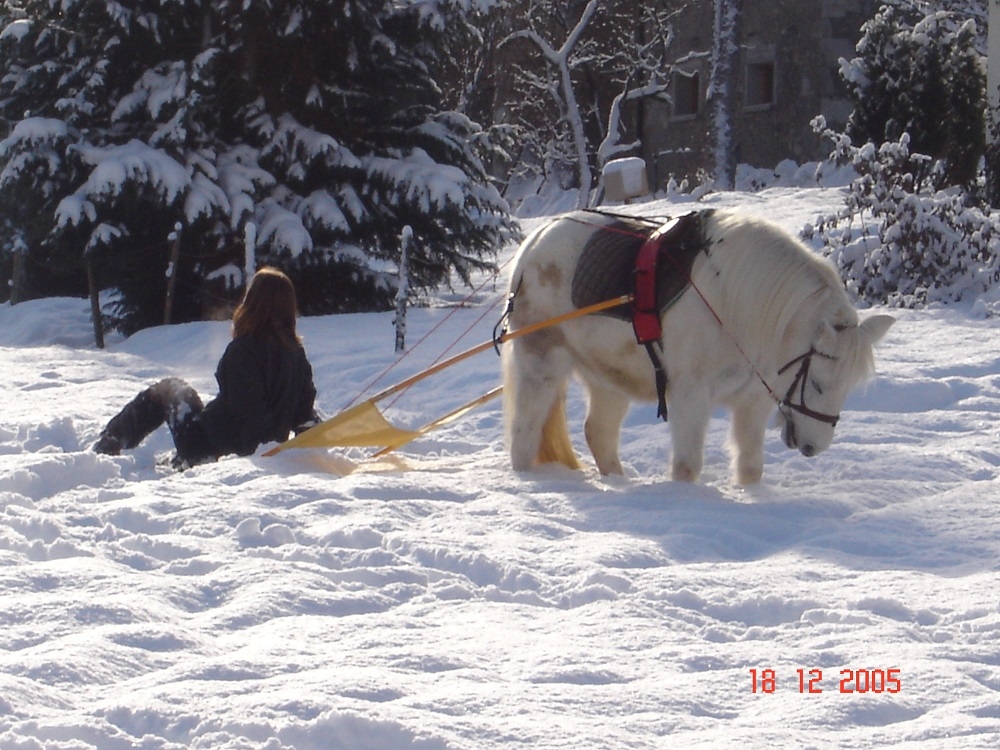 | Dire merci | Melek Merci Pour le ski joering j'en ai eu fait avec ma CalineBon il faudrait une dameuse pour que ce soit vraiment agréable. Ou sinon je ne peux vraiment pas en faire souvent : sans dameuse il faut juste une petite couche, un petit peu mais pas des dizaines de cm sinon c'est la galère pour le cheval et le skieur... ![]() La première séance n'avait pas été facile... pour moi ![]() ![]() Et c'était encore moins facile pour se relever ![]() Mais c'était sympa quand même ![]() ![]() Je m'étais même équipée de roller tout terrain pour pouvoir travailler le reste de l'année ![]() Mais avec Daïka je n'oserai pas ou si mais avec moi à cheval et une autre personne derrière ! |