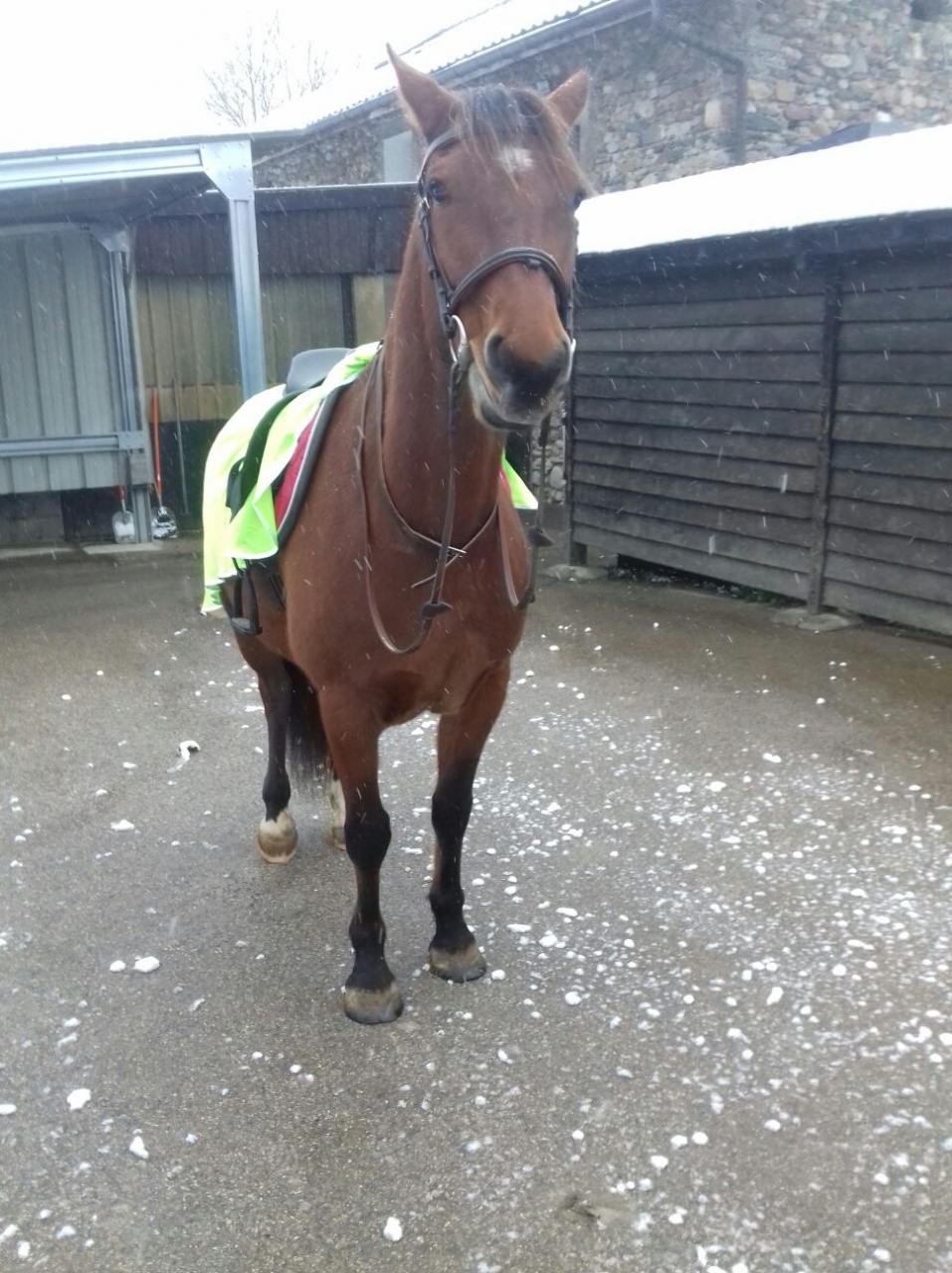 | Dire merci | Photo du 26/03: après 10 min de pansage sur Caline j'ai cru que c'était de la neige |