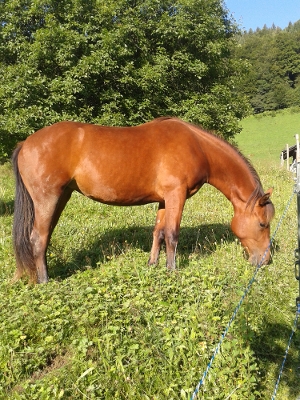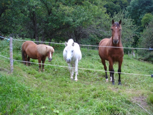 | Dire merci | Voici mes petites : Skady, Caline et Daïka![]() Caline : poney d'origines inconnues née à la maison le 13/05/1994 ![]() J'ai toujours rêvé de me racheter une petite jument. Pour cela je me suis tournée vers le Franche-Montagne pour le côté polyvalent et robuste puisque j'habite dans les montagnes de Haute-Savoie Ainsi Daïka, pouliche FM née le 25/03/2012, nous a rejoint en octobre 2012 ![]() Ne voulant pas que ma Caline -dite "la grosse"- reste seule lorsque Daïka -dite "la petite"- serait mise au travail je me suis mise à la recherche d'une ponette. Skady dite "la naine", poney shetland née en 2001 nous a rejoint en février 2014 ![]() Message édité le 16/01/16 à 12:18 |