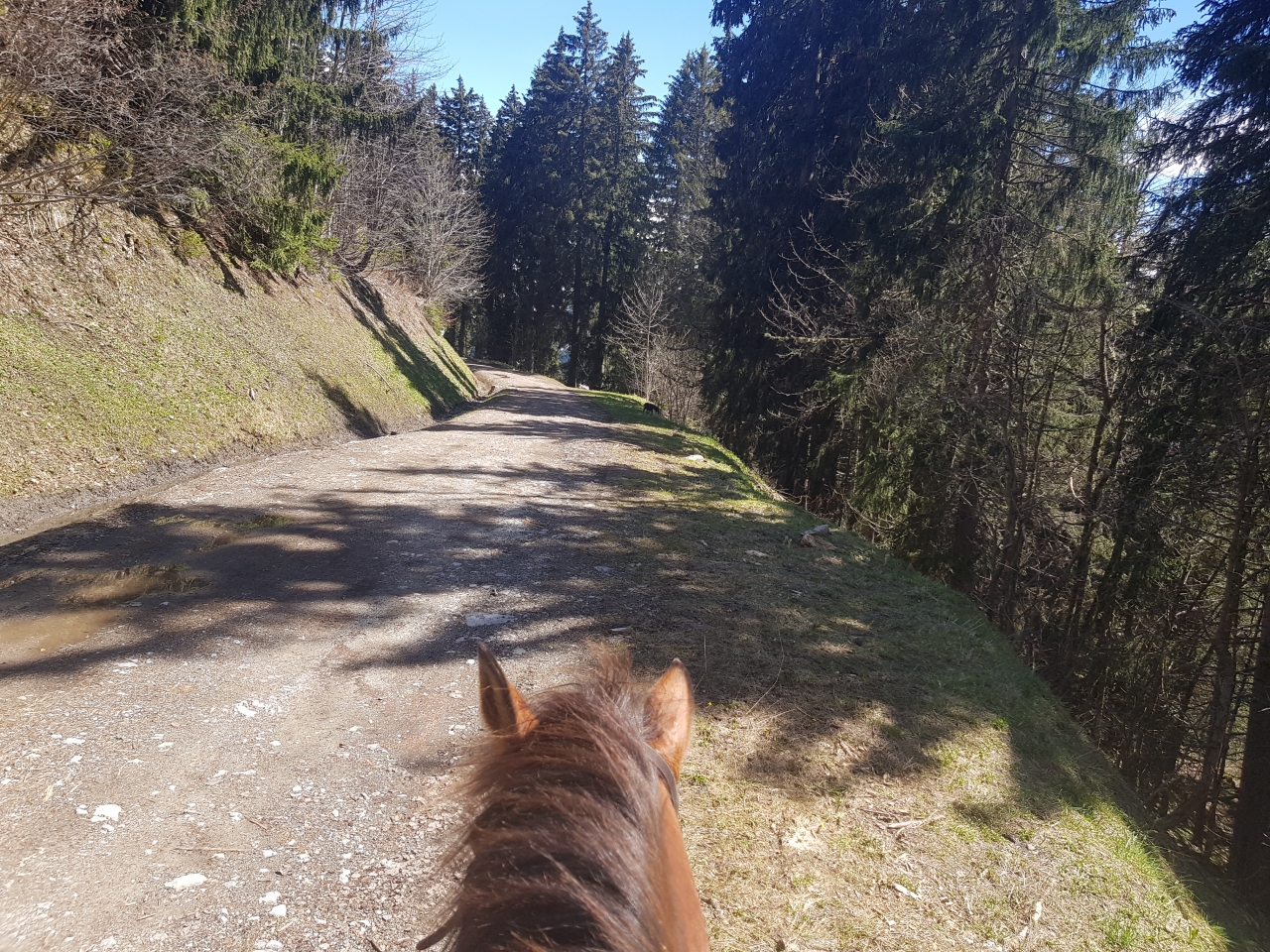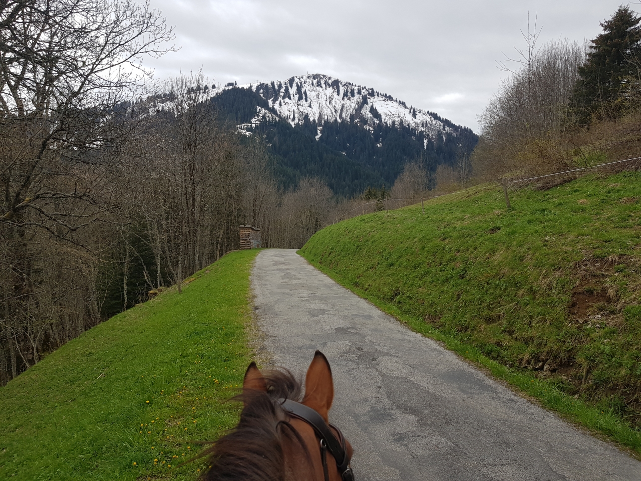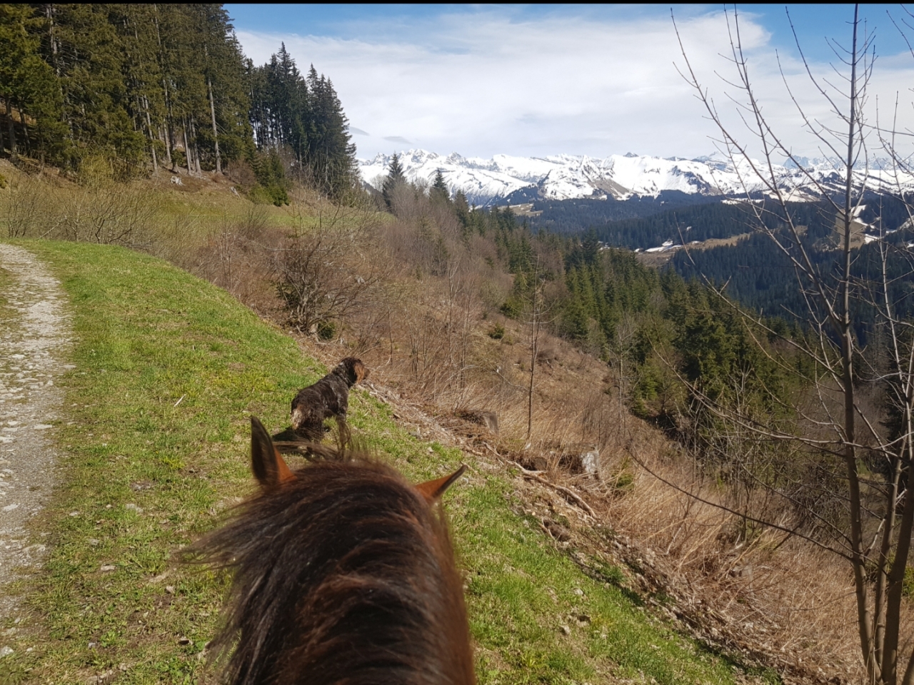 | Dire merci | Samedi, temps correct et petit créneau de dispo pour aller monter : on se fait la balade au-dessus de la maison avec un peu de dénivelé et un grand plat pour se faire une bonne galopade![]() Comme ça n'arrête pas de pleuvoir, il y a beaucoup de l'eau qui coule de partout ![]() ![]() C'est parti pour la galopade qui amène au bout de la piste : ![]() Arrivée au bout : normalement on a le Mont Blanc mais il a son chapeau aujourd'hui ![]() Retour à la maison : ![]() |