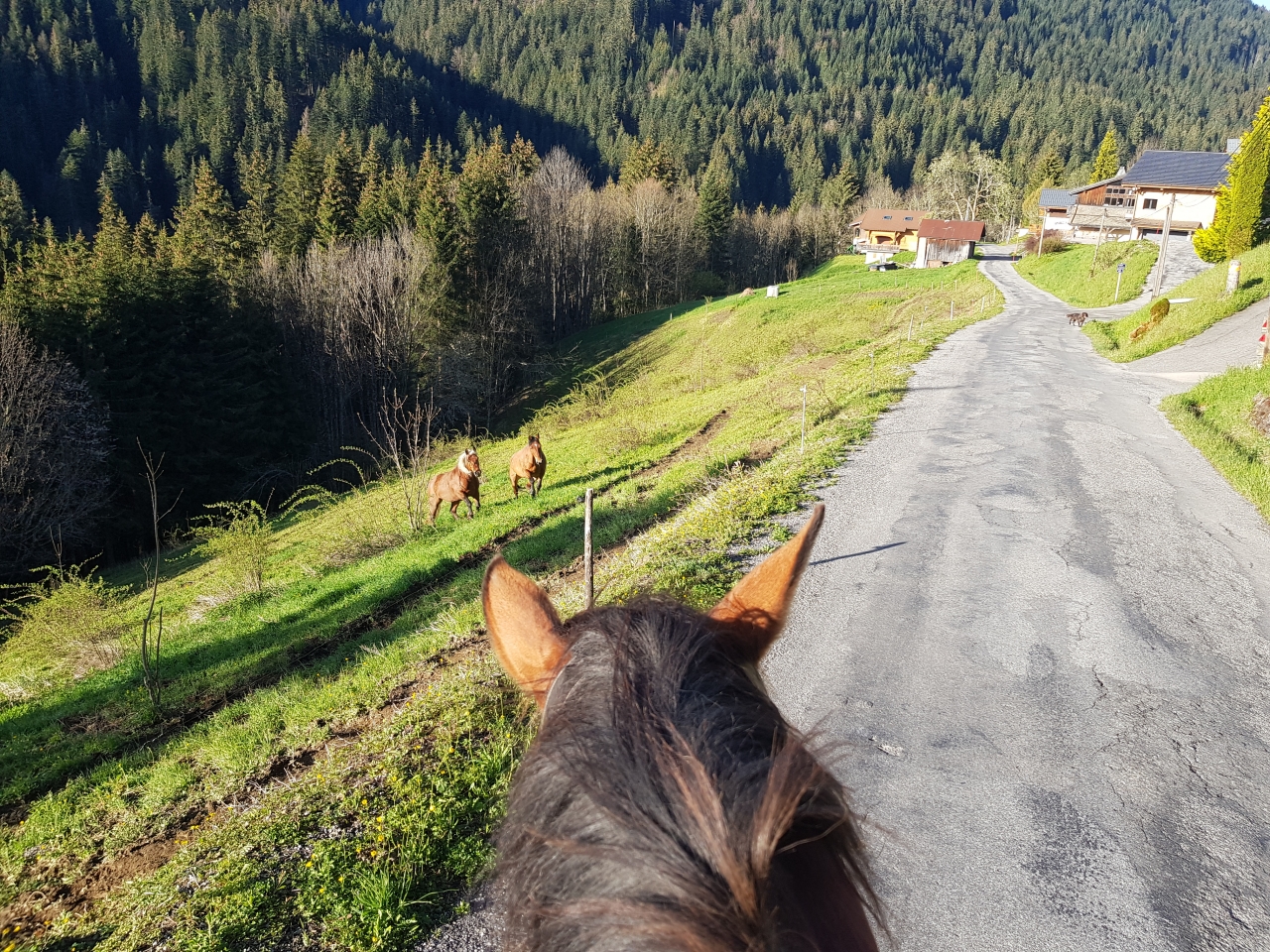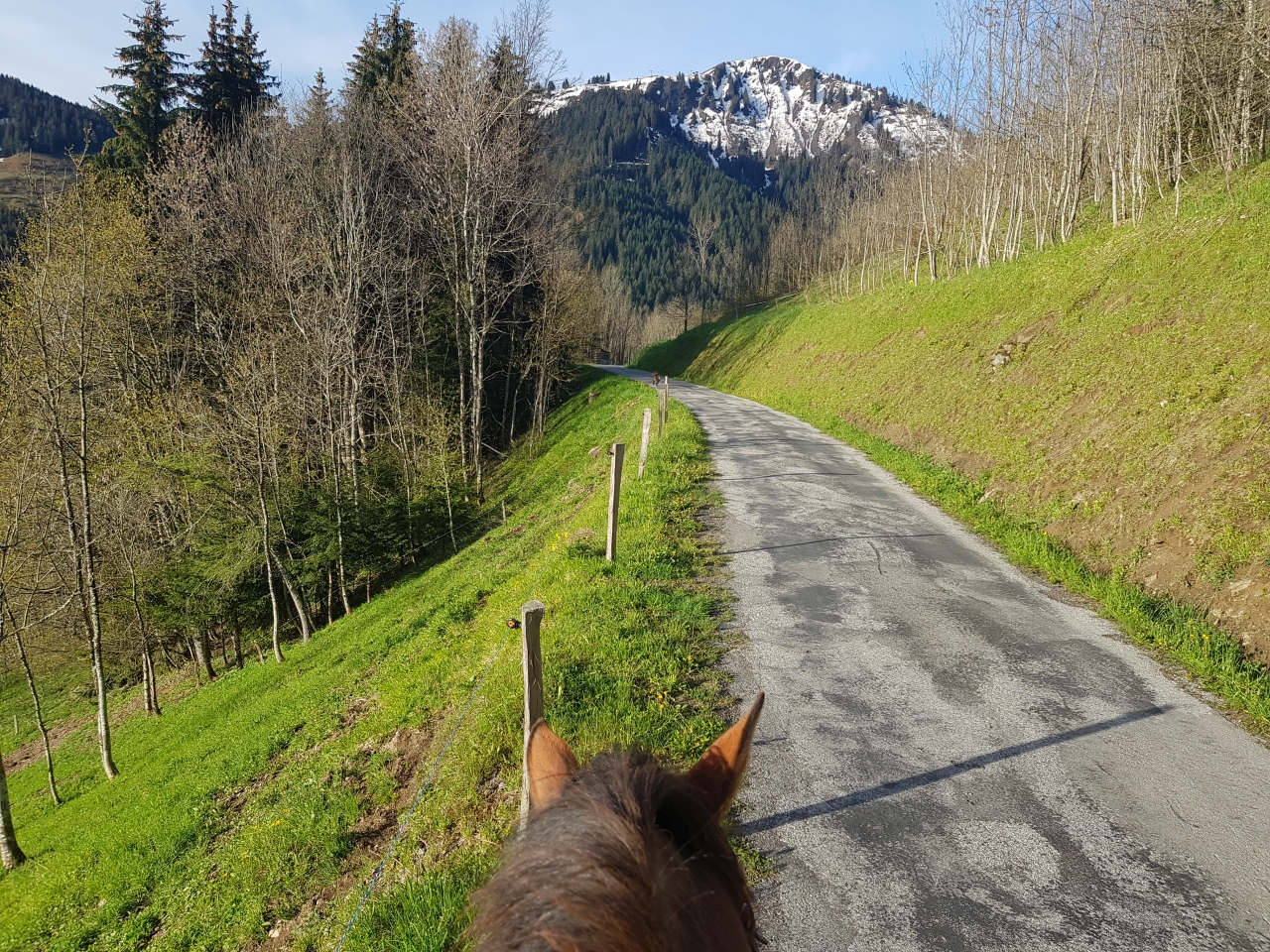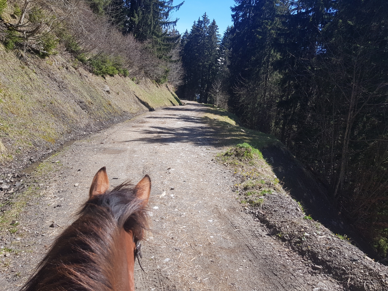 | Dire merci | Samedi, temps correct et petit créneau de dispo pour aller monter : on se fait la balade au-dessus de la maison avec un peu de dénivelé et un grand plat pour se faire une bonne galopade![]() Comme ça n'arrête pas de pleuvoir, il y a beaucoup de l'eau qui coule de partout ![]() ![]() C'est parti pour la galopade qui amène au bout de la piste : ![]() Arrivée au bout : normalement on a le Mont Blanc mais il a son chapeau aujourd'hui ![]() Retour à la maison : ![]() |