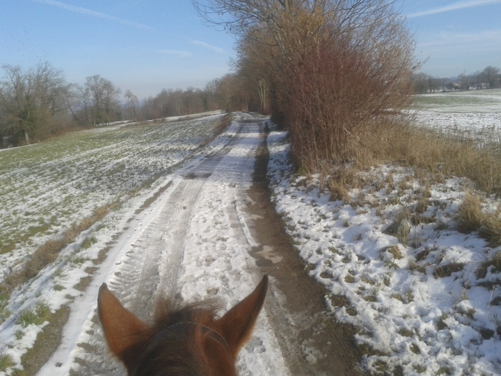 | Dire merci | Hier il a neigé jusqu'en plaine ![]() La neige j'adore ça...... mais chez moi en dessous de 900-1000m y'en a pas besoin ![]() Donc le samedi y'en a plein de cours... en plus je fais des ménages dans des apparts le matin donc pas le choix que de descendre aux Ecuries l'après-midi. Bref y'avait donc un peu de neige, et de la neige qui colle bien sous les sabots ![]() En plus cette semaine nous avons déjà pas beaucoup travaillé : je passe un concours pour être titulariser sur mon poste. J'ai passé les écrits en septembre. Sur les 1200 inscrits ils n'en gardaient que 114 puis il y a l'oral où sur les 114 ils n'en gardent que 54. Toutes les notes ont un coefficient 1 et compte pour le final mais on ne sait pas les notes qu'on a eu aux écrits avant d'aller aux oraux. Bref, j'ai été dans les 114 et vendredi j'avais mon oral à Grenoble. Alors j'ai posé tous mes après-midi histoire d'avoir un peu de temps pour bucher encore un peu tout ça et je montais ma petite en sortais du boulot (après 13h) mais j'avais vraiment toujours la tête à mon oral donc on a vraiment fait soft. Genre balade mais si elle avait pas un pas dynamique, je ne la réveillait pas Vendredi, ayant l'oral à Grenoble, elle a juste fait du paddock. Et pour conclure je suis déçue de ce que j'ai produit enfin je croise quand même les doigts parce que devoir répondre tous les ans à l'offre d'emploi du poste qu'on occupe c'est pas très agréable ![]() Donc pour revenir à hier, il faisait dans les 0°C. On va donc se promener mais on est rester au pas. Sauf qu'avec la neige et ce froid ça émoustille ![]() Bon elle a été gentille mais elle était motivé. Et puis sur le chemin du retour je sentais bien qu'elle était prête à "péter" et là dans un petite montée, elle est partie sur quelques foulées à fonds comme ci elle avait eu peur de quelque chose qui venait de derrière sauf qu'il n'y avait rien derrière et après elle était sacrément tendue ![]() En arrivant aux Ecuries, un cours poney se terminait dans le petit manège j'ai donc décidé de lâcher la petite qui n'avais pas pu se défouler elle s'en ai donné à coeur joie mais j'ai pas pensé à filmer ![]() J'ai juste pris 2 petites photos au début de la balade (sur le retour : je ne pouvais pas )![]() ![]() |