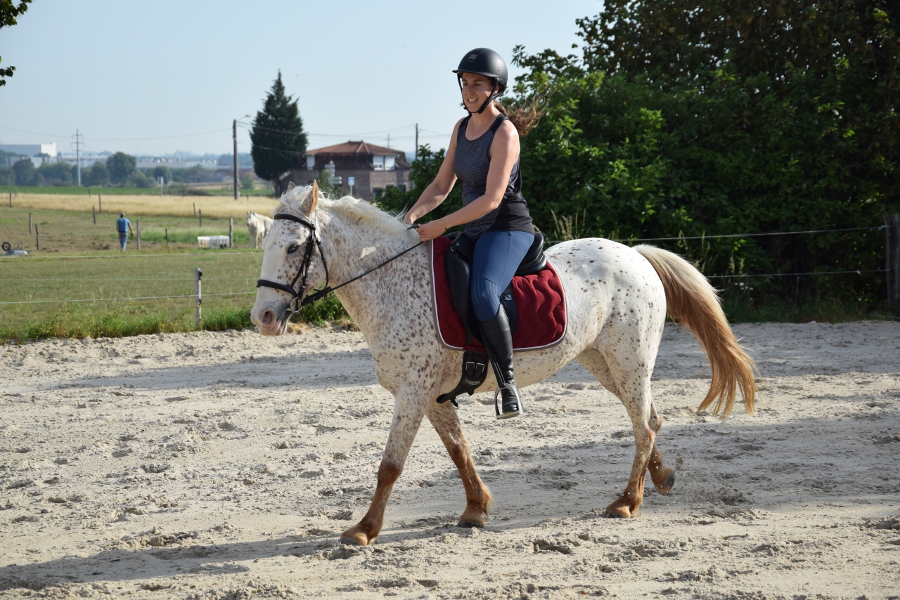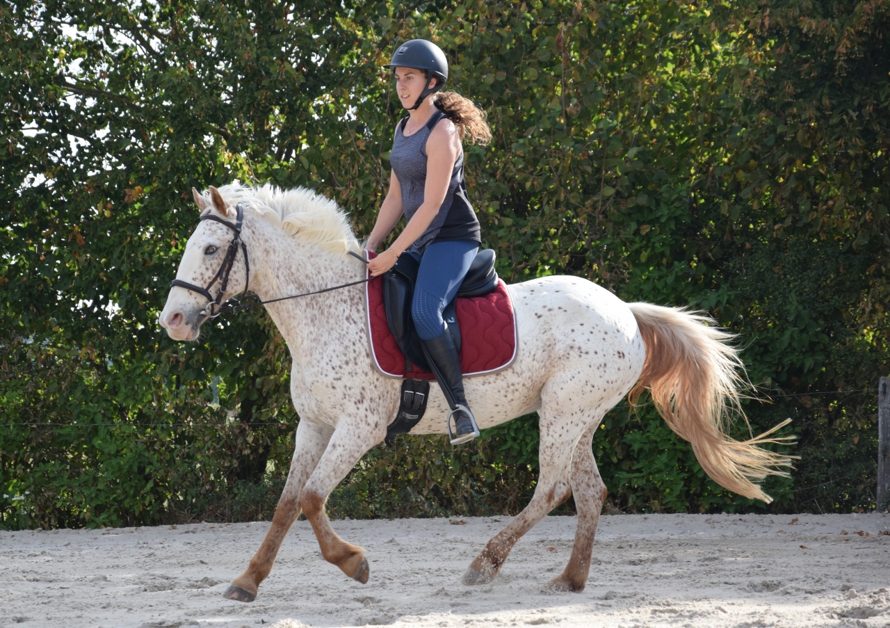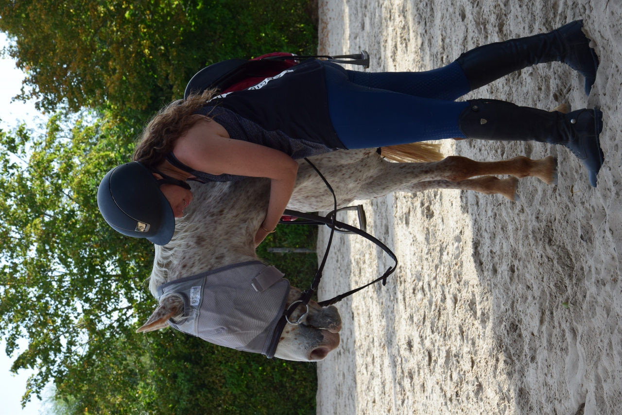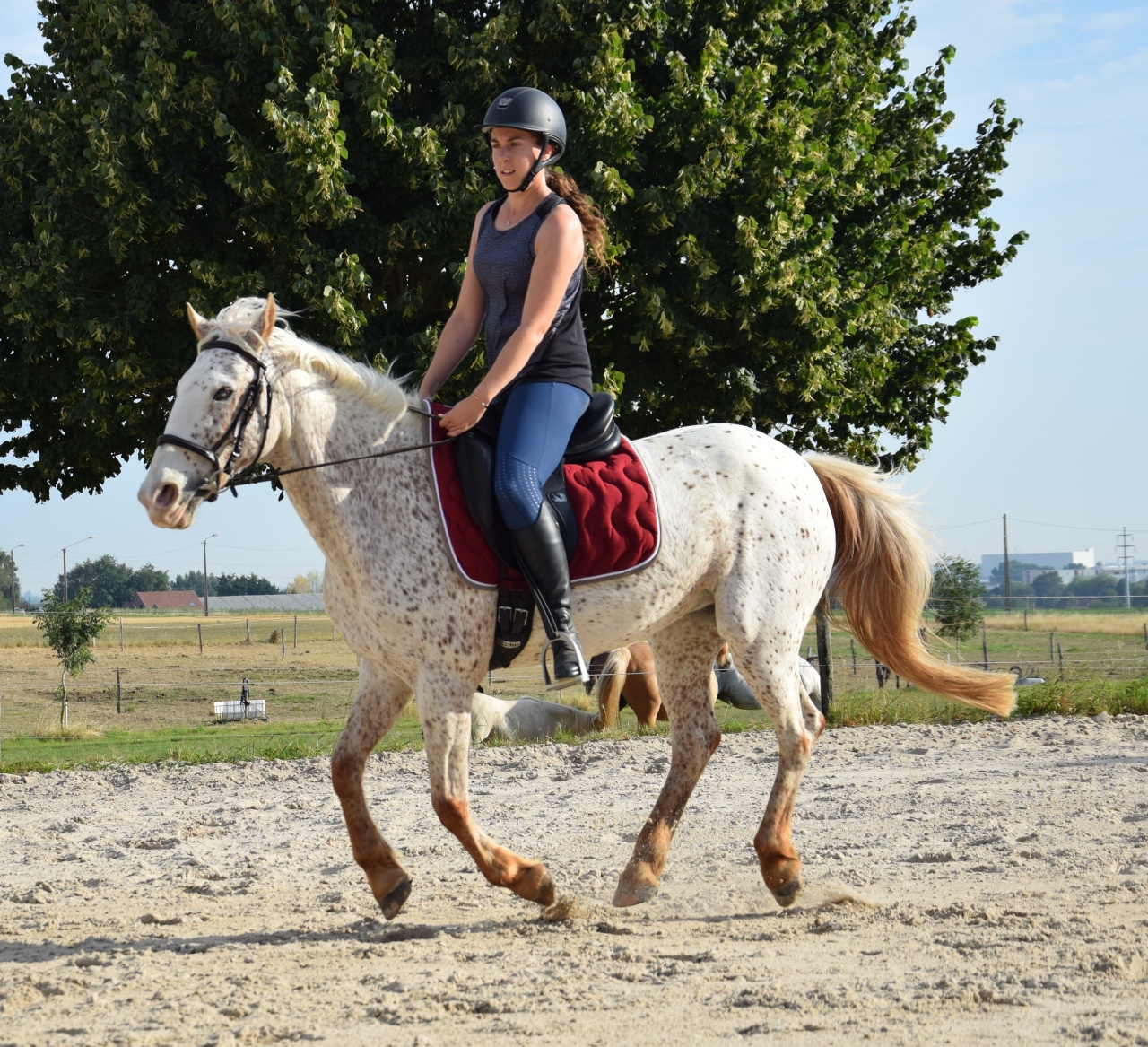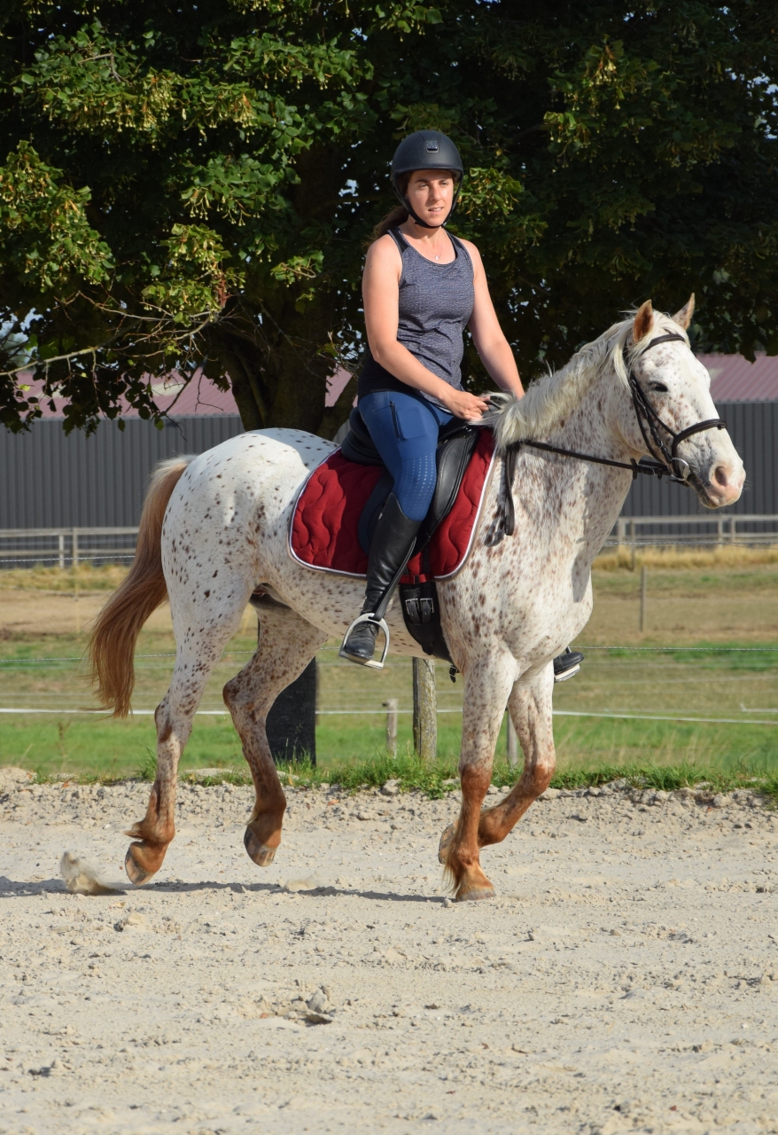 | Dire merci | Petite remontage de poste avant de partir en vacances et parce qu’enfin j’ai des photos ! Que dire à part : nouvelle selle arrivée = beaucoup plus de confort. Et Poulette est toujours aussi géniale. On repart en balade régulièrement. J’ai même retenter le galop en extérieur. Et on continue de bosser sur le plat à la maison. Aller, quelques photos sous la canicule et pas forcément représentatives des progrès de la miss Pou car il faisait déjà très chaud à 9h (quasi 30°), que la carrière était un poil trop profonde sur les bords et que j’ai pas beaucoup bossé depuis le départ en vacances de ma coach il y a 2 semaines (c’est un peu les vacances pour nous aussi on fait quasi que de la balade tranquille). Tentative de la demander de pousser son postérieur droit, on sent qu’elle aime ![]() ![]() Détente au trot pépère et bonjour poignets cassés ![]() ![]() Vu la chaleur, on passe rapidement au petit galop, pas le peine de faire durer la torture. A droite c’est facile. ![]() ![]() ![]() Exceptionnellement, on vire le masque pour faire quelques jolis photos. Et à gauche, j’en chie un peu plus ![]() ![]() ![]() ![]() Retour au trot et bonjour jambe gauche pas à sa place et plongeon en avant quand elle cherche à descendre . Faut vraiment que je passe chez l’ostéo en rentrant de vacances. Je crois que j’ai de nouveau le bassin un peu en vrac.![]() On finit par un petit galop tranquille à droite. ![]() ![]() ![]() ![]() Et c’est fini pour la journée. Des bonbons, une douche et petite pause broutage ![]() ![]() ![]() |