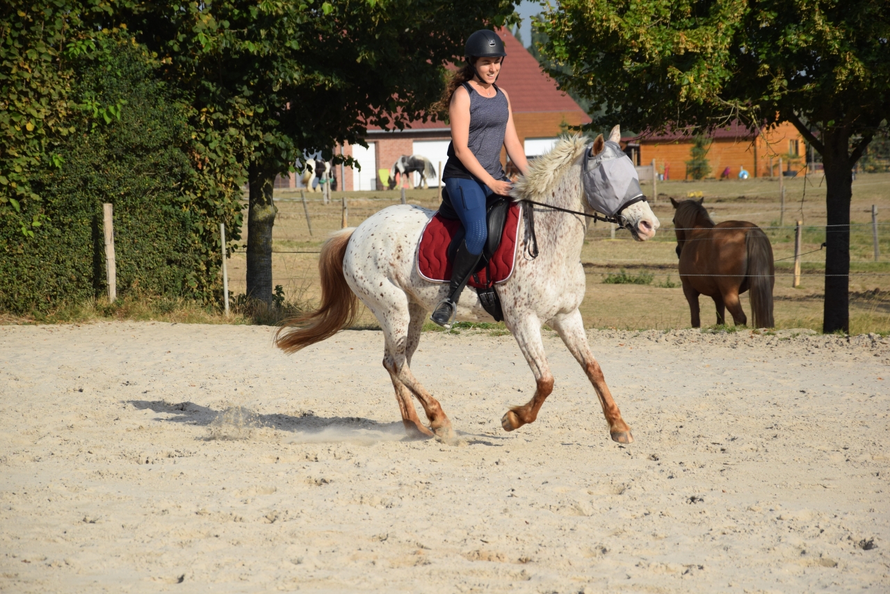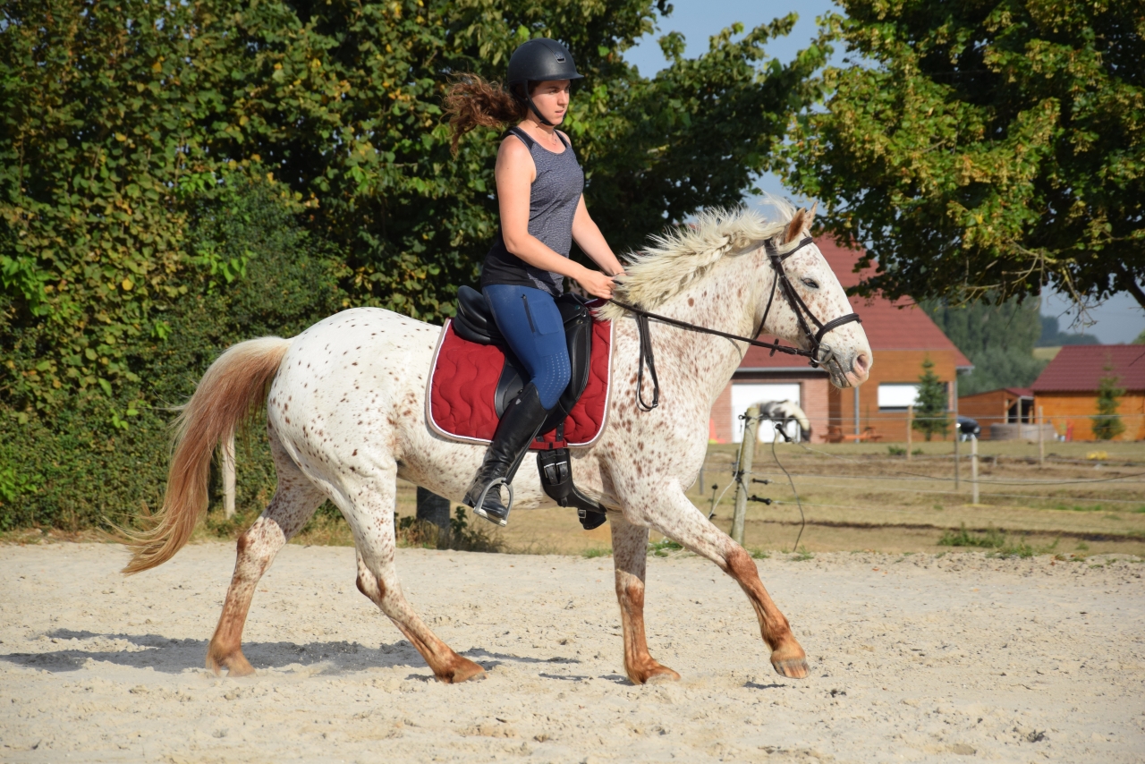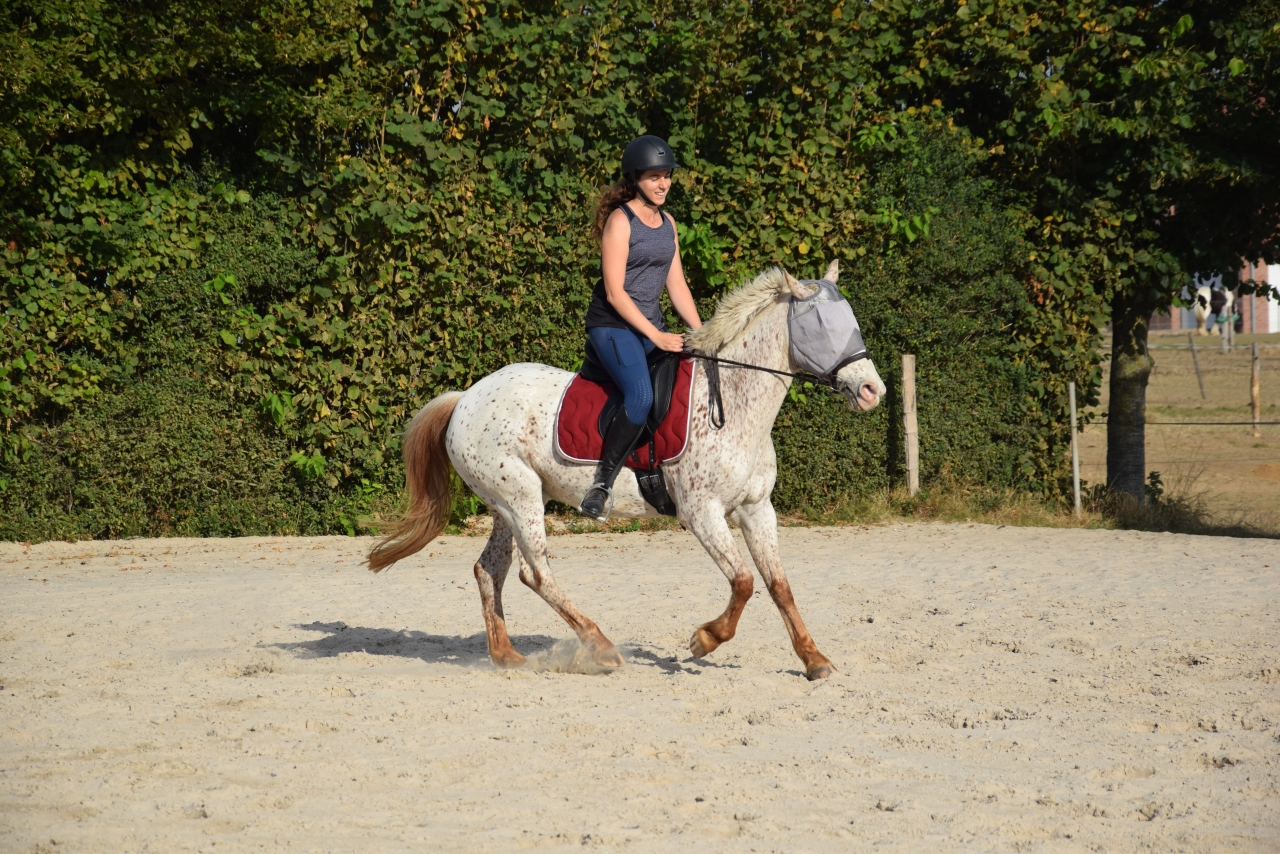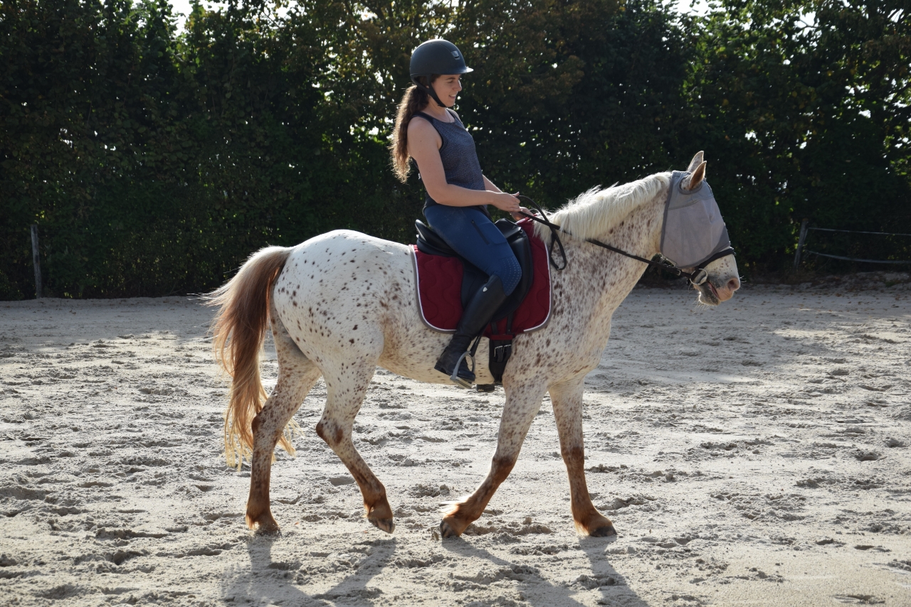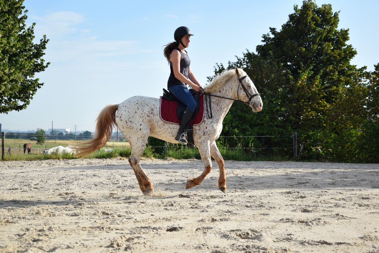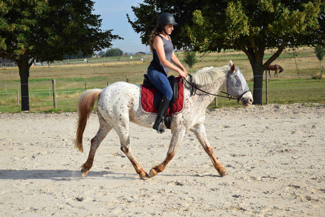| Dire merci | Petite remontage de poste avant de partir en vacances et parce qu’enfin j’ai des photos ! Que dire à part : nouvelle selle arrivée = beaucoup plus de confort. Et Poulette est toujours aussi géniale. On repart en balade régulièrement. J’ai même retenter le galop en extérieur. Et on continue de bosser sur le plat à la maison. Aller, quelques photos sous la canicule et pas forcément représentatives des progrès de la miss Pou car il faisait déjà très chaud à 9h (quasi 30°), que la carrière était un poil trop profonde sur les bords et que j’ai pas beaucoup bossé depuis le départ en vacances de ma coach il y a 2 semaines (c’est un peu les vacances pour nous aussi on fait quasi que de la balade tranquille). Tentative de la demander de pousser son postérieur droit, on sent qu’elle aime ![]() ![]() Détente au trot pépère et bonjour poignets cassés ![]() ![]() Vu la chaleur, on passe rapidement au petit galop, pas le peine de faire durer la torture. A droite c’est facile. ![]() ![]() ![]() Exceptionnellement, on vire le masque pour faire quelques jolis photos. Et à gauche, j’en chie un peu plus ![]() ![]() ![]() ![]() Retour au trot et bonjour jambe gauche pas à sa place et plongeon en avant quand elle cherche à descendre . Faut vraiment que je passe chez l’ostéo en rentrant de vacances. Je crois que j’ai de nouveau le bassin un peu en vrac.![]() On finit par un petit galop tranquille à droite. ![]() ![]() ![]() ![]() Et c’est fini pour la journée. Des bonbons, une douche et petite pause broutage ![]() ![]() ![]() |