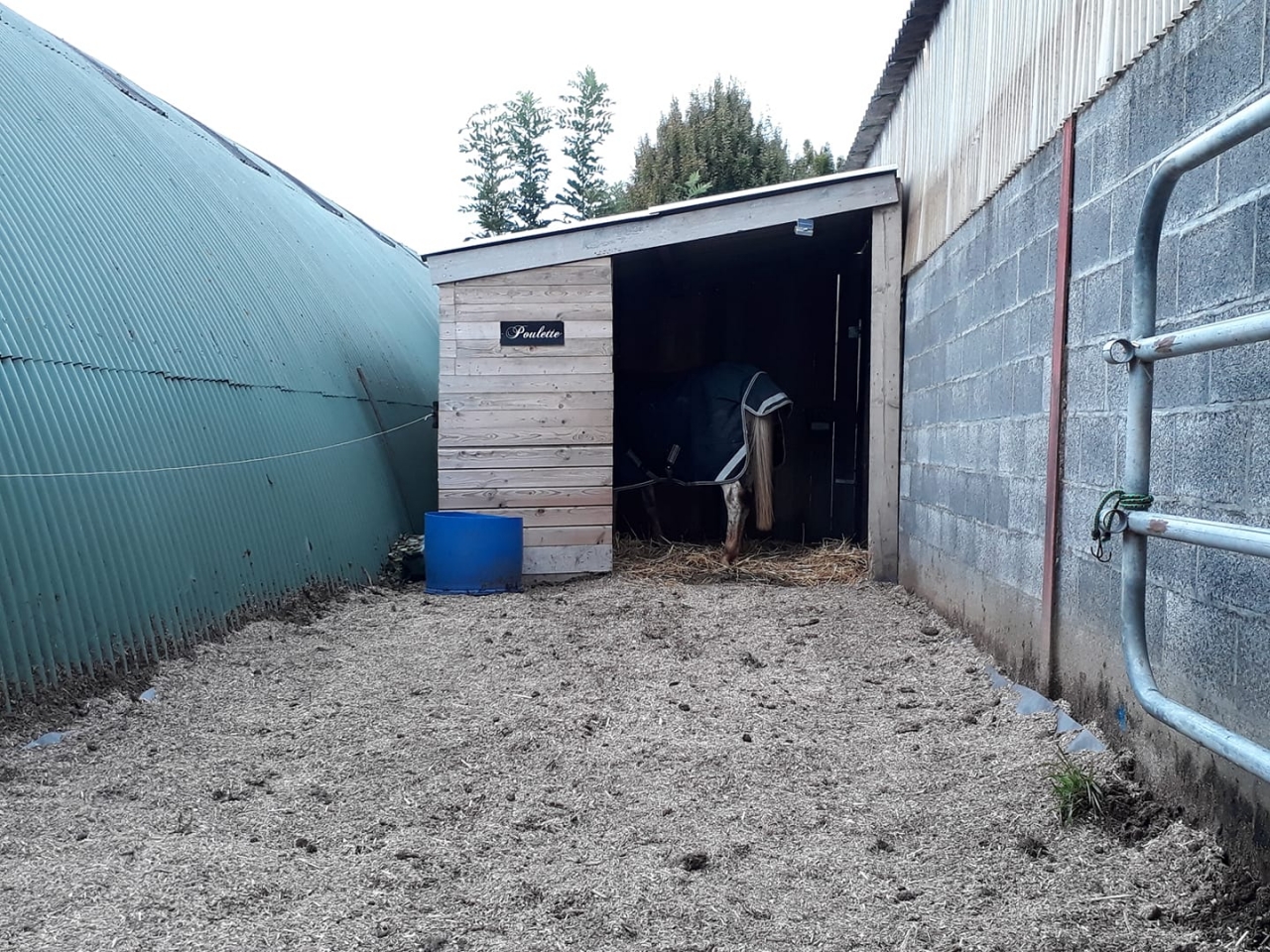 | Dire merci | Pas mal de nouvelles depuis août. L’automne nous a bien rattrapé, il est loin le temps des 30°C à 9h du matin. On a débuté cette saison par énormément de pluie et donc retour au box et aux angoisses pour Pou qui conserve son tic ambulatoire d’une année sur l’autre. Suite au départ d’une pensionnaire, on a eu l’immense chance de récupérer son petit paddock avec abri. Petit travaux d’aménagement et de stabilisation et voici la nouvelle maison de la princesse. Ca équivaut à un petit box terrasse. Elle se sent moins enfermée et a plus de place donc elle tourne moins. ![]() |