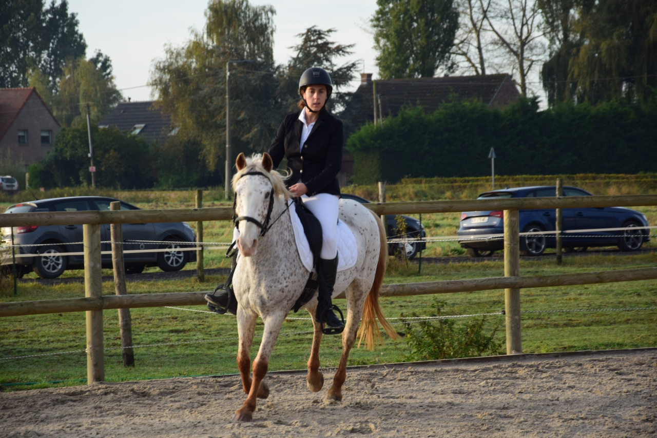| Dire merci | Dimanche dernier, c’était de nouveau concours interne aux écuries ! Pour l’occasion on déroule de nouveau la club2. En progression car on dépasse les 70% avec un 71.2% ! Et on s’offre la première place (bon on était que 2 dans l’épreuve )Tous les figures passent bien, ponette stable mais parce qu’il faut toujours un mais ça manque toujours terriblement de rondeur et de « brillant ». Le pire c’est qu’on y arrive… en dehors du carré. Mais je pense que je me mets vraiment trop la pression quand je déroule. Je ne désespère pas, à force de travail, ça deviendra plus naturel. Quelques photos mode concentration on ![]() Détente studieuse ![]() ![]() ![]() ![]() ![]() Et sur le carré ![]() ![]() ![]() ![]() ![]() ![]() ![]() ![]() ![]() ![]() ![]() Ensuite, petite folie du jour, on a participé à l’épreuve de maniabilité. C’est clairement plus l’éclate, ça se voit sur mon visage. Plein de truc voyant, donc pour une fois que j'ai avantage avec ma ponette aveugle, on allait pas se priver ![]() On finit 2ème de l’épreuve. Si j’étais moins nulle pour attraper les anneaux, on pouvait prétendre au titre ![]() ![]() ![]() ![]() ![]() ![]() ![]() ![]() |