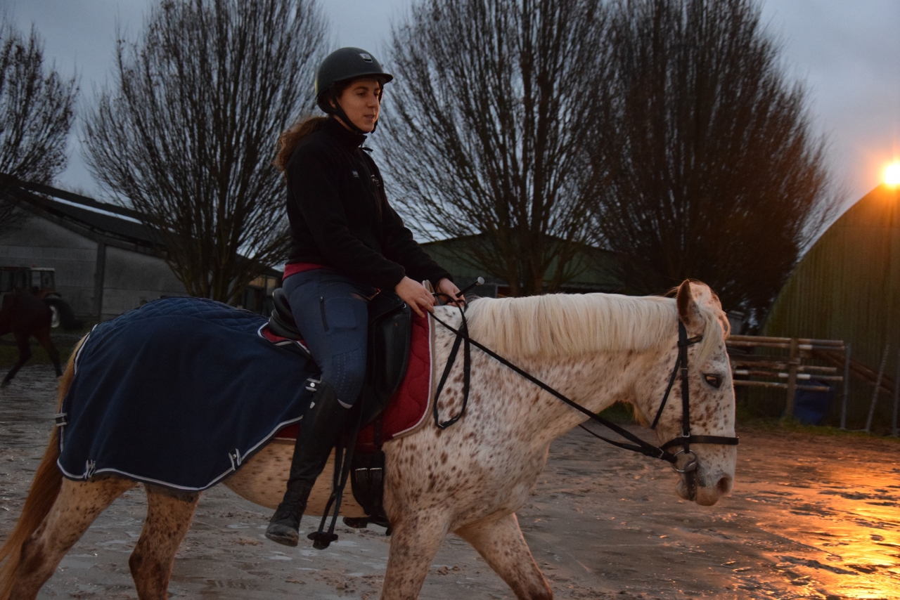 | Dire merci | Déterrage de poste à nouveau 😊![]() Pas mal de boulot depuis janvier. Mon ancienne coach est revenue dans la région donc c’est double peine pour poulette avec parfois 2 cours dans la semaine. En vrai, c’est rarement le cas car mon ancienne coach est de moins en moins disponible donc c’est plutôt une chance que mon ancienne soit de retour parce que sinon, je tournerai à 1 cours en moyenne par mois. Depuis janvier, on s’est donc à la fois concentré sur l’attitude de la poulette (l’avoir sur la main et surtout la garder stable pendant toute la reprise) et ma position. Et clairement on a fait des progrès sur les deux tableaux. Monter par tout temps, quasi tous les jours commence enfin à payer. Pas de sortie officielle, car n’ayant ni voiture, ni van c’est toujours une grosse organisation pour sortir. Il faut forcément que je parte avec quelqu’un d’autre pour rentabiliser le déplacement. Mais nous avons organisé un petit concours interne dans notre écurie. Pour la blague, ça faisait 3 semaines qu’il n’avait pas plu dans le Nord, donc nous avions bien arrosé la piste la veille en pensant que le soleil allait taper dès le matin. Evidement, ce matin là gros brouillard qui a encore plus humidifié la piste. La météo du nord est vraiment capricieuse. On déroule une club3 super propre qui nous offre la première place et un joli 71,3%. Enfin on passe le cap des 70% et enfin on gagne des points sur les notes d’ensemble ! Adieux les 6 et bonjours les 7 et 8 J’enchaine sur la club2, mais clairement je suis beaucoup moins présente. Ponette plus éteinte également donc on rate des choses qui normalement passaient bien ou qu’on avait spécialement travaillé. Mes allongements au trot ne sortent pas (bon à sa décharge la piste était trop arrosée) et le travail au galop à droite qui normalement est notre point fort est bof. Mon départ n’est pas net, je rate mon coin et saccage donc ma ligne courbe. Quand même contente parce qu’on est proche des 70% avec un 69% donc pas si mal. Désormais on va aller chercher plus d’engagement et plus de rondeur. On arrive en phase de peaufinage de nos reprises. Pour la peine quelques photos : ![]() ![]() ![]() Quand tu oublies de t'assoir dans le fond de ta selle ![]() ![]() |