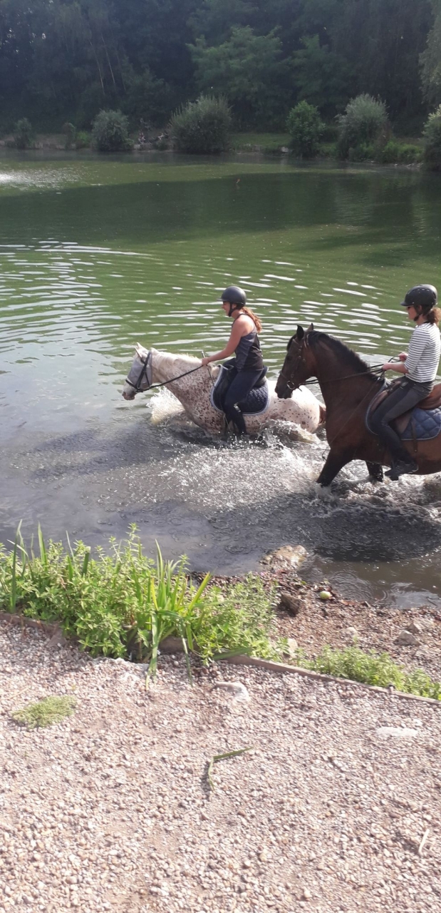 | Dire merci | Aller, pour changer du dressage pour une fois une photo de balade. Samedi beau soleil et pas de températures écrasantes (vive le nord, y a pas que des désavantages 😊 ) donc on en profite pour partir sur une grosse balade avec comme objectif : atteindre un point d’eau pour faire trempette des pieds des poneys. Pour la blague, je pars avec un trotteur qui déteste l’eau et ne va dedans que si quelqu’un y va à pied avec lui, et un espagnol qui n’est clairement pas un cheval de tête et n’ira jamais dans l’eau en premier si y a pas un copain qui lui montre la voie. Moi je suis hyper sereine, je sais que la mienne rentre dans l’eau sans soucis, genre suivez moi et ça ira tout seul. J’aborde donc le petite descente pour aller à l’eau sans me poser de question, poulette d’un pas conquérant comme d’habitude, elle met son sabot dans l’eau et …. Recul de 5m genre ça va la bouffer. ![]() J’ai été un peu trop confiante là et je l’ai carrément surprise. Deuxième tentative, je marque une petite pause juste avant l’eau pour la faire sentir, et on rentre sans problème. Ca faisait longtemps que j’avais pas fait ça et avec les chaleurs de ces derniers jours, je pense qu’elle était trop contente. Elle se faisait pas prier pour entrer et sortir, j’ai même fait quelques foulées nagées parce que ça descendait sec dans ce petit étang. L’éclate totale. Dommage que le spot soit loin des écuries (faut compter 3 bonnes heures de balade aller/retour) et l’abord est pas non plus exceptionnel. Y a des gros cailloux et ça descend vite. Mais pour une fois de temps en temps, c’est quand même sympa. Quelques photos ![]() ![]() ![]() ![]() ![]() ![]() |