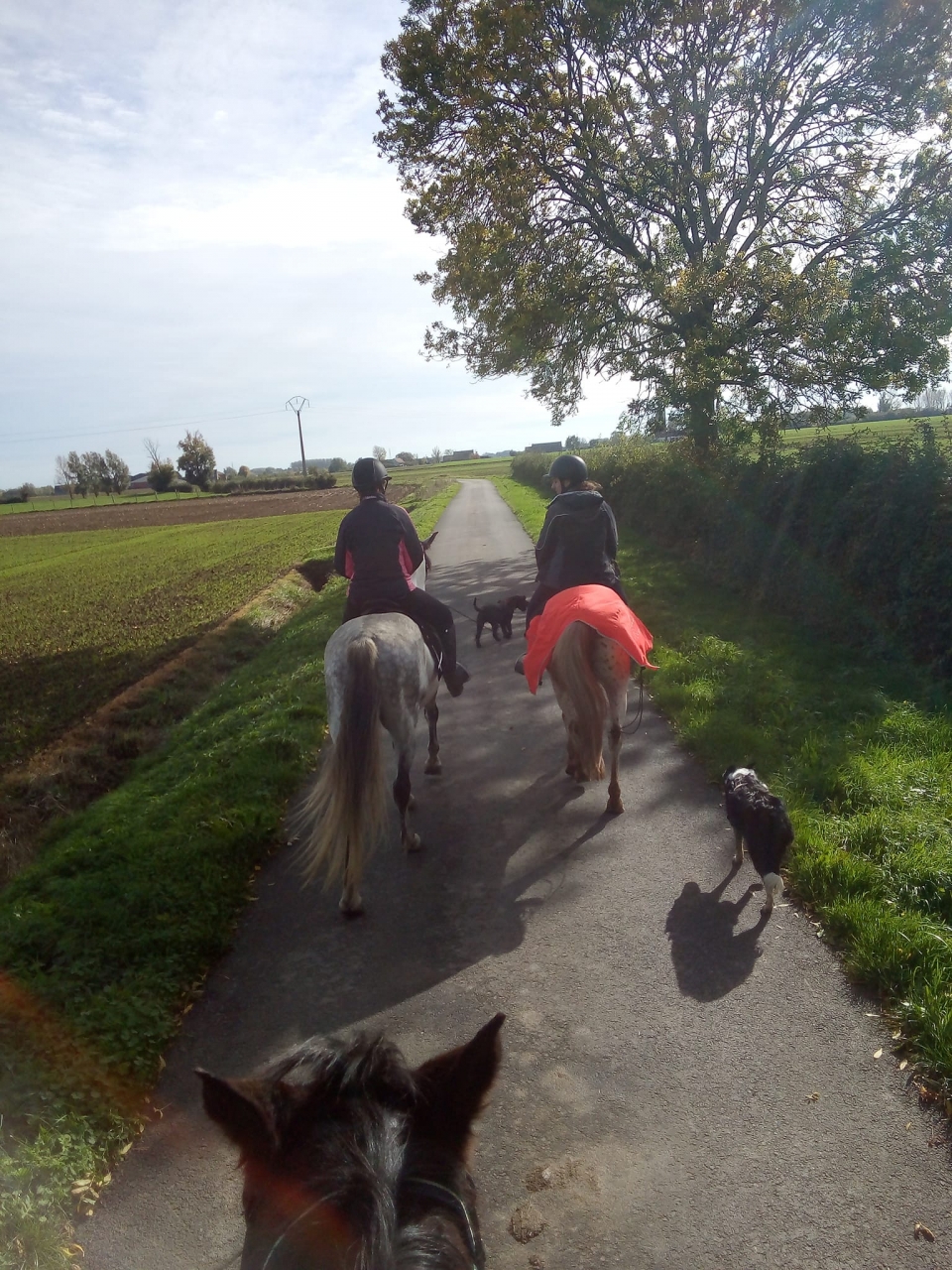 | Dire merci | Petites news. C'est la rentrée, on continue le boulot. Objectif cette année : dérouler la club1. Y a du boulot ![]() Et sinon on continue de balader. Dernière sortie en date, 13km autour de Steenwerck. On a de la chance niveau météo. On a chargé les chevaux sous la pluie. 40min de route, et balade sans pluie. On a même réussi à pique niquer avant de rentrer. On y croyait pas trop. Petite frayeur dans la van, la morue avait décidé de tester un nouveau truc : se jeter sur le bat-flanc. Bon au final, elle a vite arrêter et a super bien voyager. Et pas de blague au retour. Quelques photos ![]() ![]() ![]() ![]() ![]() ![]() ![]() Chien en PLS après la balade . Il a pas l'endurance et l'expérience de la border collie de ma pote ![]() ![]() |