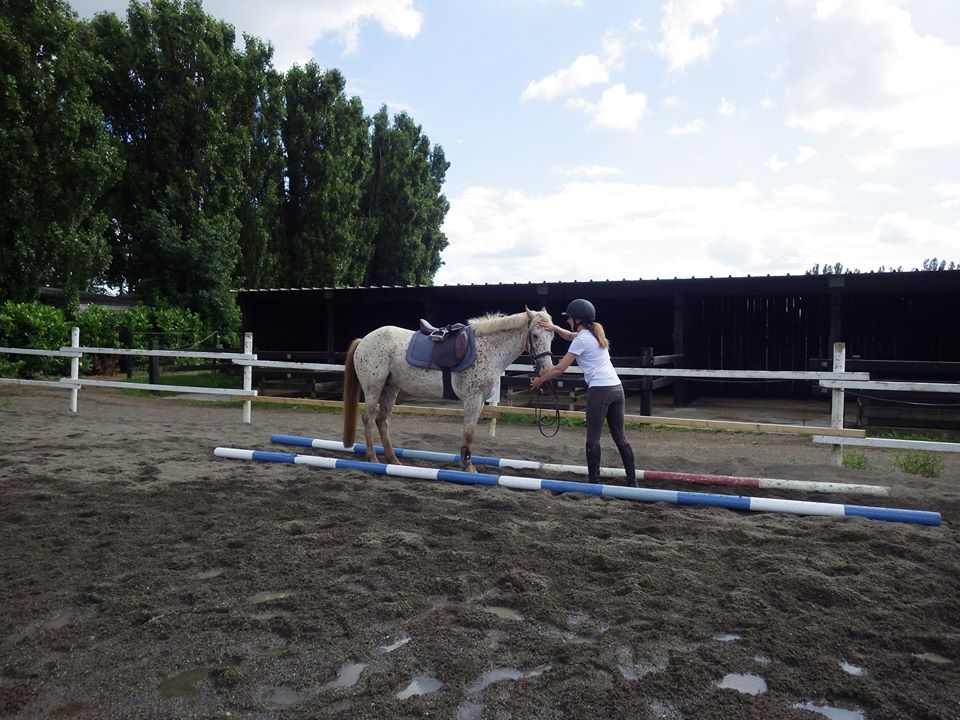 | Dire merci | On finit finalement avec un petit travail sur le galop. Sur un cercle on travaille la transition trot-galop et galop-trot. Toujours le même problème : je ne suis pas droite et je dois sans arrêt penser à me redresser. Enfin, petit debriefing en marchant les chevaux. Bref j'étais ravie de ce cours et je pense avoir enfin trouver l'instructrice de mes rêves ! Par contre pas de chance, elle n'est pas disponible cet été. Je vais donc essayer de prendre un nouveau cours la semaine prochaine avant ses congés et ensuite on pourra normalement si remettre pleinement à la rentrée en septembre ! D'ici là, elle m'a laissé également des pistes de travail à pied pour préparer le travail sur l'embarquement en camion. |