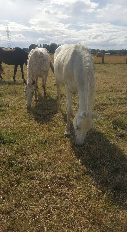 | Dire merci | Cela faisait un moment que je voulais créer un post pour celle qui partage ma vie depuis plusieurs années, mais je n'ai jamais vraiment eu le courage de me lancer et je ne voyais pas trop l'intérêt de créer un post si derrière je ne l'alimentais pas régulièrement. Maintenant que j'ai enfin rapproché ma ponette de chez moi, j'espère que nous allons pouvoir avancer ensemble et que je vais pouvoir partager avec vous nos moments et pourquoi pas profiter de votre expérience pour progresser. Voici donc le post de miss Poulette du Soleil (je n'ai pas choisi son nom et je maudis régulièrement son naisseur pour cette imagination débordante...). Ponette croisée Appaloosa-OI Message édité le 05/12/24 à 11:59 |