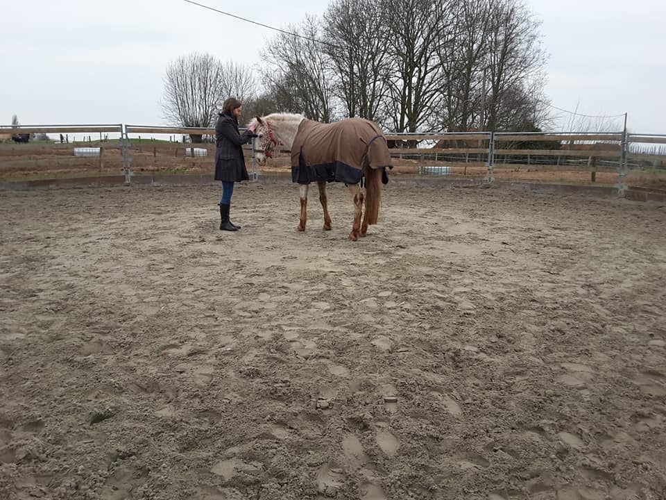| Dire merci | Malgré quasi un mois d’antibiotiques, pas d’amélioration. ![]() Ces semaines ont été compliquées. Pou avait perdu l’appétit, ponette éteinte. Je voyais bien que sa vue ne s’améliorait pas du tout. Par contre, elle semblait avoir bien pris ses repères. On pouvait enfin la sortir sans son copain et vis versa. Petite victoire lorsque ma copine est passé monter son poney un matin et a donc laissé Pou toute seule au paddock sans aucun soucis. Mi-décembre, on retourne quand même à Gand pour une visite. Elle a magnifiquement embarqué dans le camion et très bien voyagé. Mais en moins de quelques minutes, mes derniers espoirs ont vite été douchés. Le diagnostic du véto sur place est sans appel : jument aveugle et qui le restera toute sa vie. La partie la plus difficile à avaler : le discours assez dur du véto sur la dangerosité de posséder un cheval aveugle. J’ai vraiment eu l’impression qu’il était prêt à me l’euthanasier sur place. Avec du recul, je comprends le besoin de responsabiliser les propriétaires et d’éviter des accidents avec certains irresponsables, mais j’avoue l’avoir très mal vécu. Le seul point positif, c’est que du coup on décide d’arrêter les antibiotiques. Les jours qui ont suivi ont été vraiment durs pour moi. Je n’arrêtais pas de ressasser les paroles du véto. Est-ce que je suis une irresponsable, une entêtée, est-ce que je prends des risques inconsidérés à garder une ponette aveugle ? J’en ai bien sûr discuté avec le gérant. Je lui ai bien expliqué qu’elle ne voyait plus rien, mais pour le moment aucun soucis pour lui. Elle n’a jamais posé de problème et s’est bien adapté. |