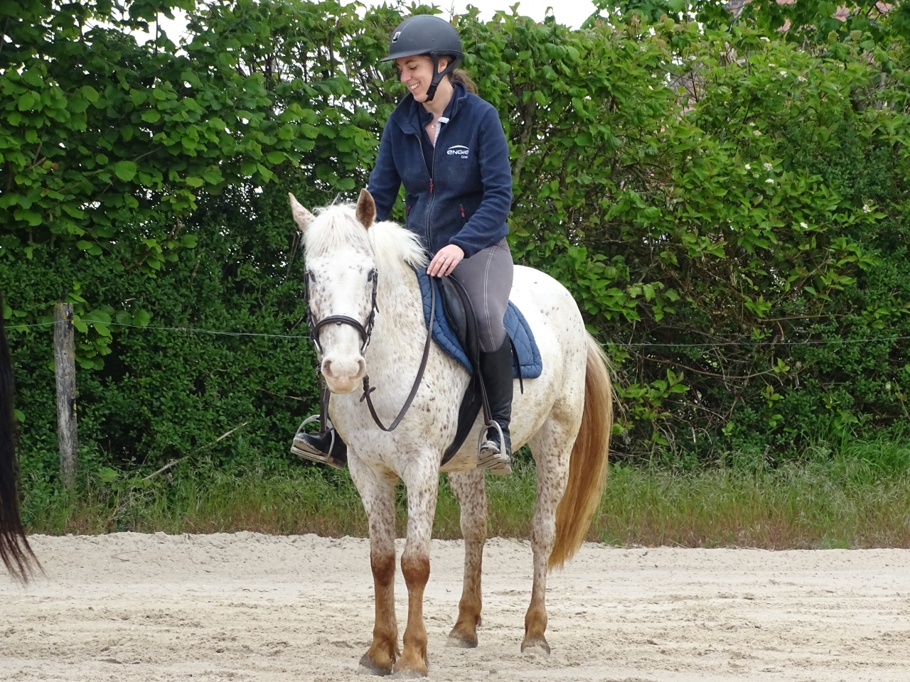 | Dire merci | ![]() La remontée trimestrielle de mon post 😊 Une cavalière photographe de mon écurie a fait quelque photo de notre dernier cours, alors c’est l’occasion de donner des nouvelles. On continue notre bout de chemin avec des hauts et des bas. C’est pas tous les jours faciles d’être propriétaire d’une ponette aveugle mais je m’estime très chanceuse de pouvoir continuer à monter et d’évoluer avec elle. ![]() On poursuit donc les bases : le contact, les hanches, les épaules. Quelques photos pour illustrer tout ça. A noter que je regarde très souvent par terre parce que la carrière était un poil profonde et qu'il y avait eu beaucoup de cavaliers avant nous vu que mon cours était à 12h. Donc pour éviter de trébucher méchamment, j'essaye d'anticiper à mort l'endroit où elle doit poser ses pieds. ![]() Mais des fois je regarde au loin ![]() ![]() Pause bavardage ![]() ![]() ![]() ![]() Ce tout petit pli qu'elle me donne enfin à droit c'est une immense victoire ! ![]() Un départ au galop où elle a du partir en mode fofolle vu que je me retrouve devant et qu'elle a la tête en l'air ![]() ![]() Normalement c'est plutôt ça le galop ![]() Ma prof qui quitte bientôt la région pense qu'on peut désormais dérouler une club3. Ca pourrait nous faire un petit objectif sympa mais bon j'ai peur de lui imposer ça et que ça fasse trop de truc à gérer pour ma petite poulette qui ne voit plus rien. L'objectif de cet été sera peut être d'essayer de se faire une sortie avec son copain pour voir si elle gère un déplacement. Sachant qu'elle avait fait un aller/retour à Gand totalement aveugle sans problème. Je m'angoisse peut être pour rien. En attendant on continue de travailler et y a du boulot ![]() |