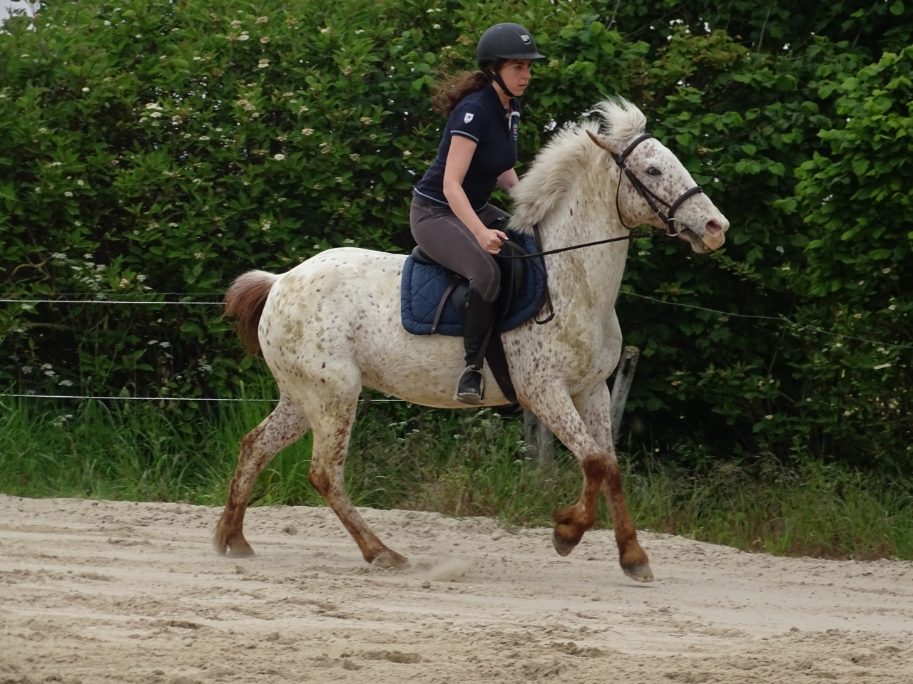 | Dire merci | Cela faisait un moment que je voulais créer un post pour celle qui partage ma vie depuis plusieurs années, mais je n'ai jamais vraiment eu le courage de me lancer et je ne voyais pas trop l'intérêt de créer un post si derrière je ne l'alimentais pas régulièrement. Maintenant que j'ai enfin rapproché ma ponette de chez moi, j'espère que nous allons pouvoir avancer ensemble et que je vais pouvoir partager avec vous nos moments et pourquoi pas profiter de votre expérience pour progresser. Voici donc le post de miss Poulette du Soleil (je n'ai pas choisi son nom et je maudis régulièrement son naisseur pour cette imagination débordante...). Ponette croisée Appaloosa-OI Message édité le 05/12/24 à 11:59 |