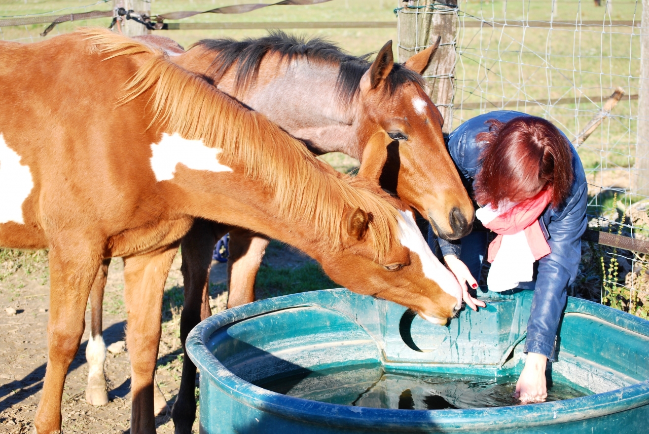 | Dire merci | Après de longs mois d'absence, je reprends le chemin de mon post. Je suis très peu chez moi depuis le mois de janvier, je suis entrain de terminer ma formation. Je ne vois Frimeur que très peu, je n'en peux plus. Plus que 15 jours et c'est fini... Mais du coup, Frimeur est absolument imbuvable ! Hier, c'était l'enfer (de retour pour un week-end). C'est un stressé de la vie de nature mais à l'écurie ça se passe bien normalement. Hier, l'attache c'était horrible, il bouge de partout, tire comme un bourrin, se coince la longue sur la nuque, etc. Il ne veut pas donner ses pieds comme il danse tout le temps. Je l'emmène brouter, il a peur de tout, veut fuir, se pointe. Vivement que je puisse revenir régulièrement parce que là ce n'est pas possible... Après je pense que les hormones ne doivent pas aider. Il se bagarre assez violemment tout le temps avec son pote du même âge. Il est blessé de partout (poils arrachés essentiellement mais quand même). Une castration en mai vous en pensez quoi ? Pas trop tard ? J'avais abandonné l'idée en me disant que ça attendrait l'automne mais du coup, je me repose la question... En plus, changement de pension à venir au mois de juin (je déménage). Je stresse déjà ![]() |