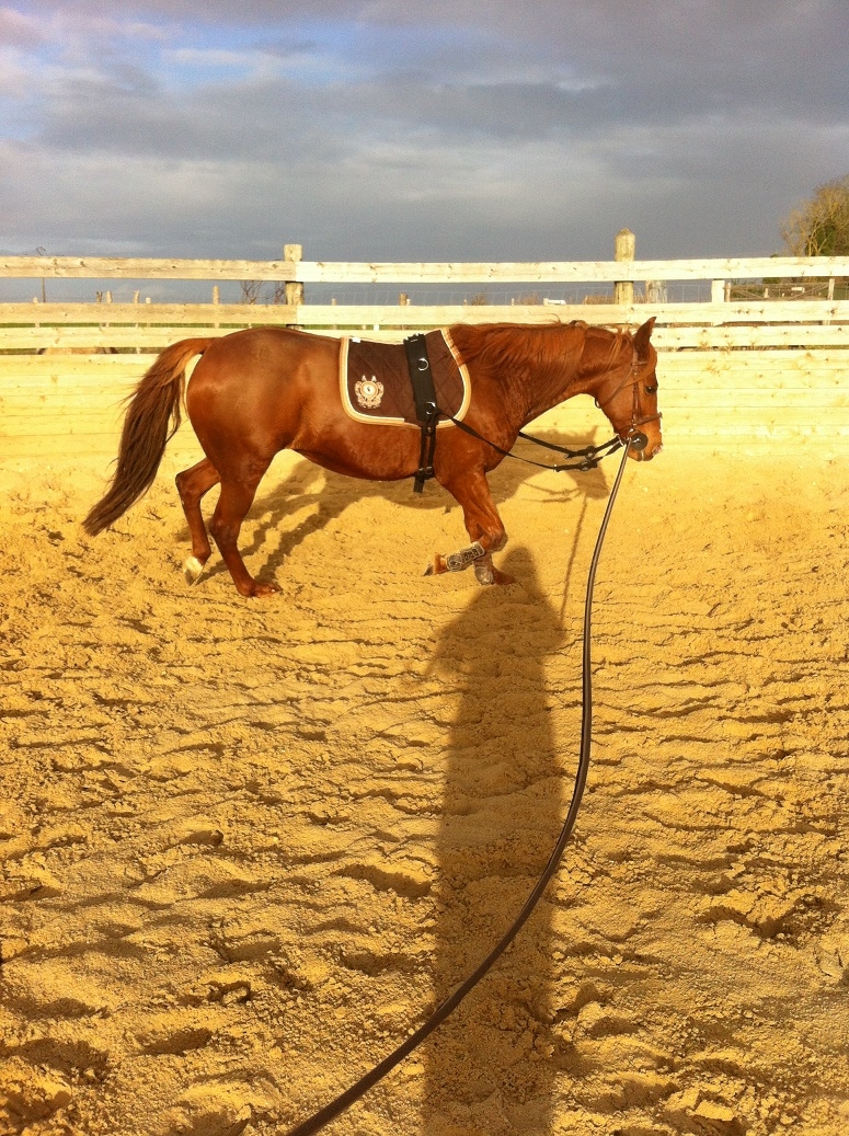 | Dire merci | News : Hier beau temps même si humide ++ on se motive ! Au programme séance de longe (2 semaines sans rien faire ...) avec élastique. Déjà premier bon point elle est sage à l'attache malgré ses yeux remplis de conneries ... Peut etre que je tiens le bon bout pour le pansage parce que faire l'essui glace et trembler comme elle faisait ça va bien 5min ... Ensuite second super point, elle n'a absolument pas bougé quand j'ai mis le tapis et sanglé !! J'avoue je m'attendais à ce qu'elle fasse un peu son cirque vu qu'elle n'a pas vu de sangle, tapis, ni rien depuis le 3 aout ... Sur la séance en elle même, j'ai dans un premier temps lachée en liberté à chaque main histoire qu'elle lache son jus et il y en avait besoin ... queue sur le dos et tout le tintouin ... et galop comme une débile désunie etc etc...Bref on se marre bien et surtout on se dit que ce n'est pas aujourd'hui qu'on va avoir une longe dans le calme et une allure rebondie. Pas loupée ! Trot bien trop précipité pour obtenir de réelles bonnes choses ... mais bon je peux difficilement lui en vouloir j'ai qu'à venir la travailler plus souvent aussi ! Les élastiques ont été branchés sur la fin de la séance et très large car elle ne les avait jamais eu donc je ne voulais pas qu'elle se braque dessus. D'ailleurs va falloir que je bidouille quelque chose car ils sont trop petit pour le moment donc je ne peux pas les attacher comme je le souhaite. On verra ça la prochaine fois. Et sinon je vous ai fait quelques photos et 2 vidéos. Alors clairement elle n'engage pas du tout mais en longe c'est un poil compliqué pour elle, et je ne vois pas tellement comment améliorer ça. Et sur la vidéo surtout à main gauche je trouve qu'elle marque. Alors elle l'a toujours plus ou moins fait et comme là elle précipite en plus je pense que ça joue d'avantage. Elle a vu l'ostéo en juillet ![]() |