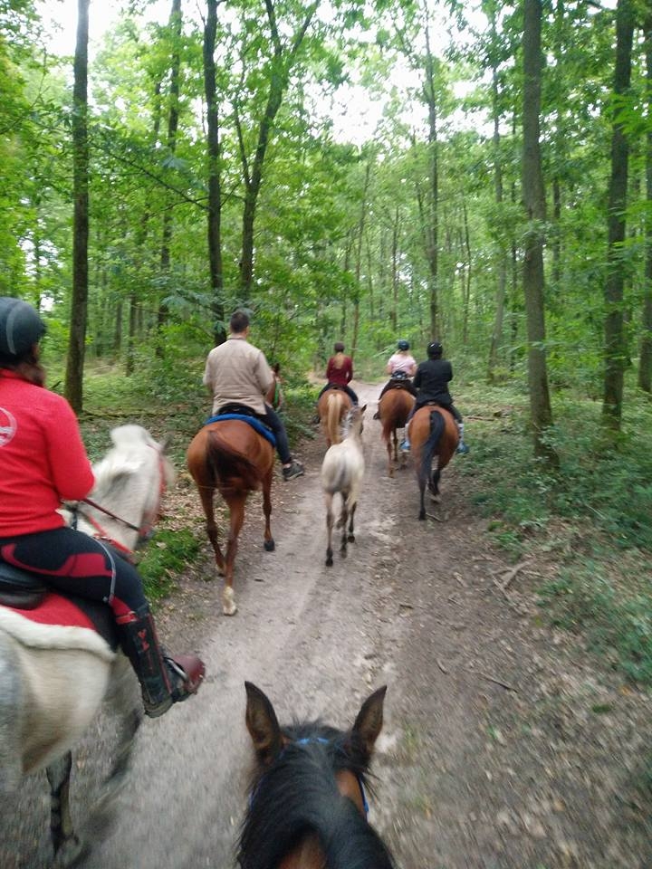 | Dire merci | EQUISALAMANDRE: Nous (Itak22 et nicotine) prenons la route le vendredi soir pour environ 2 heures de route, avec Cha'ym et Rhawa dans le van. Le voyage se passe sans encombre et nous retrouvons Stéphanie et Chloé qui sont arrivées un peu avant nous. Montage de paddock et tente au plan d'eau naturel de Mont-près-Chambort où nous avons été accueillies par l'équipe d'Equiliberté 41 avec une bonne bouteille de Cheverny. Une fois, tout le monde bien installé, on pique-nique et au dodo ! Samedi matin, on déjeune à la fraîche et à cheval à 8h30 pour une boucle de 37 kms. Nous sommes les premières à partir sous un ciel couvert mais il fait bon. Le rythme est tranquille mais nous ne nous faisons pas prier pour traverser les vignes à bon train. Pause à 10h environ, avec l'équipe Equiliberté qui nous attend pour une dégustation de Cheverny, terrine de gibier et fromage de chèvre. ![]() ![]() ![]() ![]() ![]() ![]() Message édité le 04/11/16 à 14:42 |