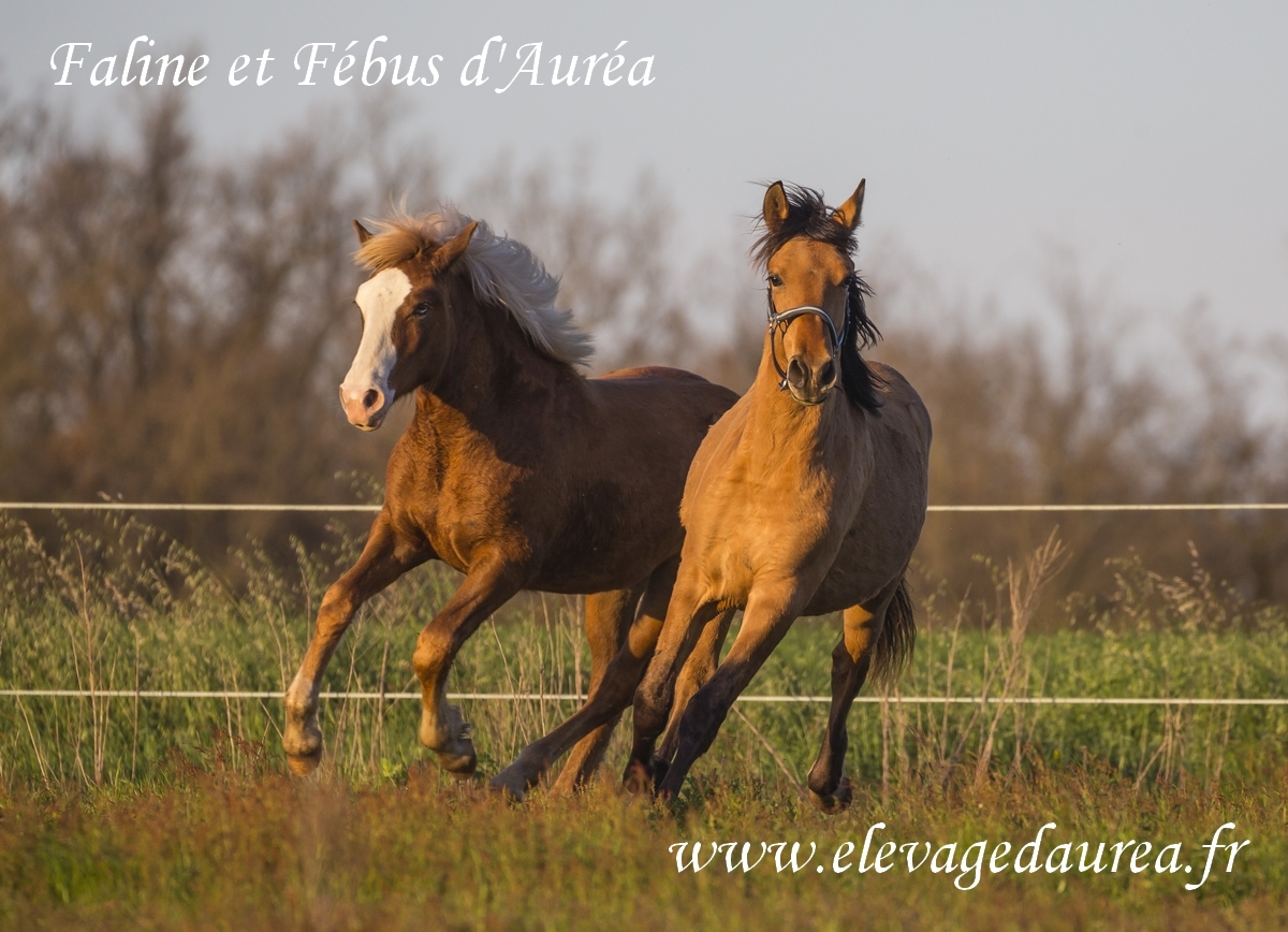 | Dire merci | bon, sinon, parlons un peu des news..... je me suis amusée hier à toiser Féérie et Falcon...ben j'ai pas été déçue du voyage! Féérie, 10 mois, 1m43 au garrot Falcon, 9 mois, 1m44 au garrot ....je comprends mieux pourquoi j'avais l'impression que Faline était naine ![]() Donc avis aux personnes intéressées par Falcon: ne pas vouloir un petit cheval |