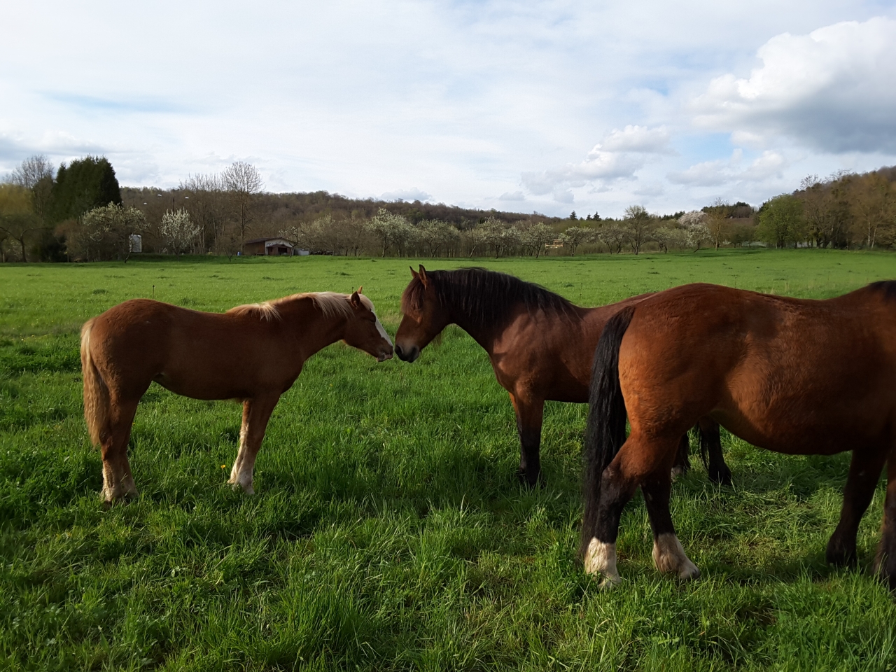 | Dire merci | Roh Faline elle fait un peu "crevette" à côté des copains de pré en tout cas contente de savoir qu'elle va bien ! |