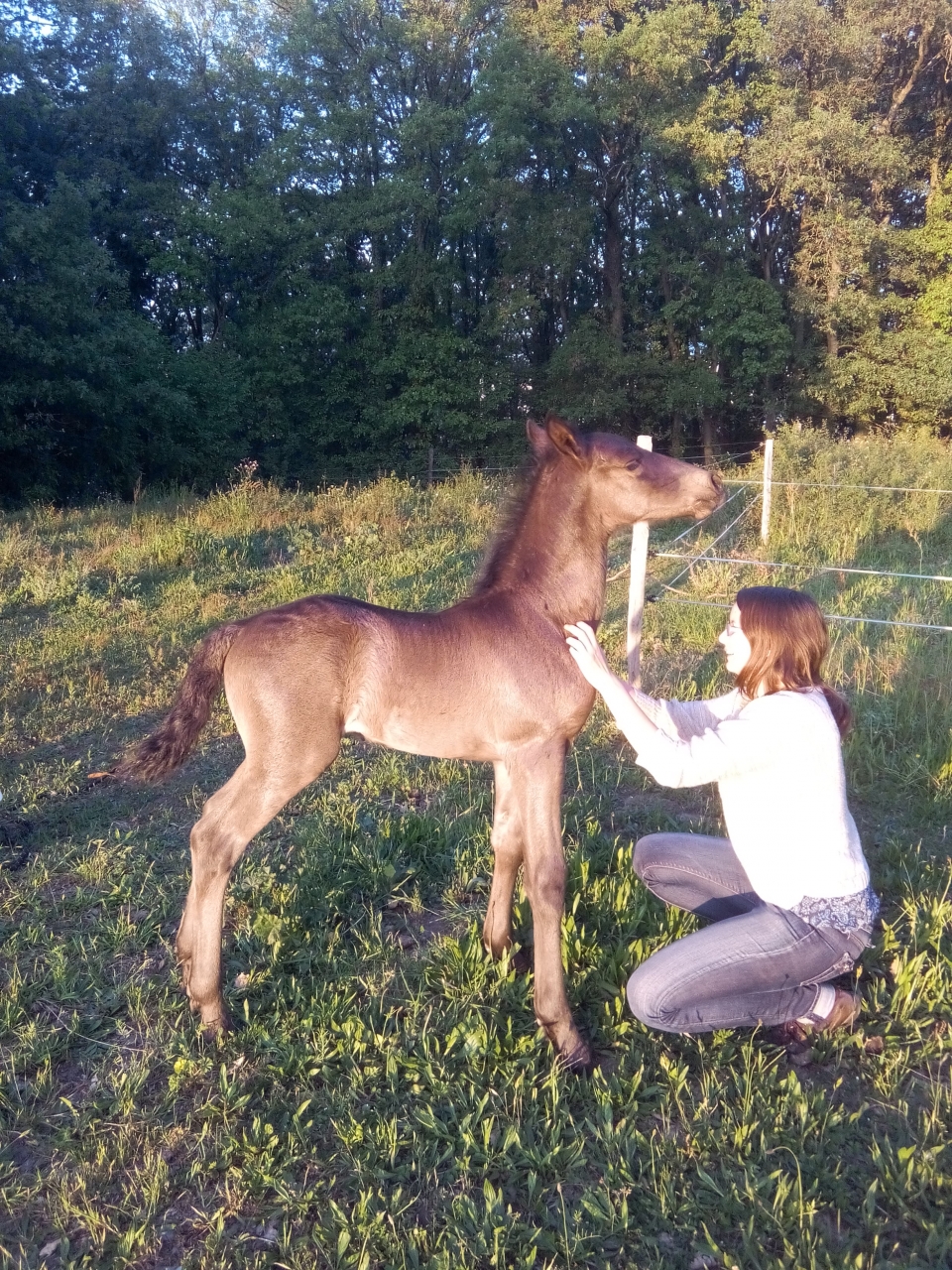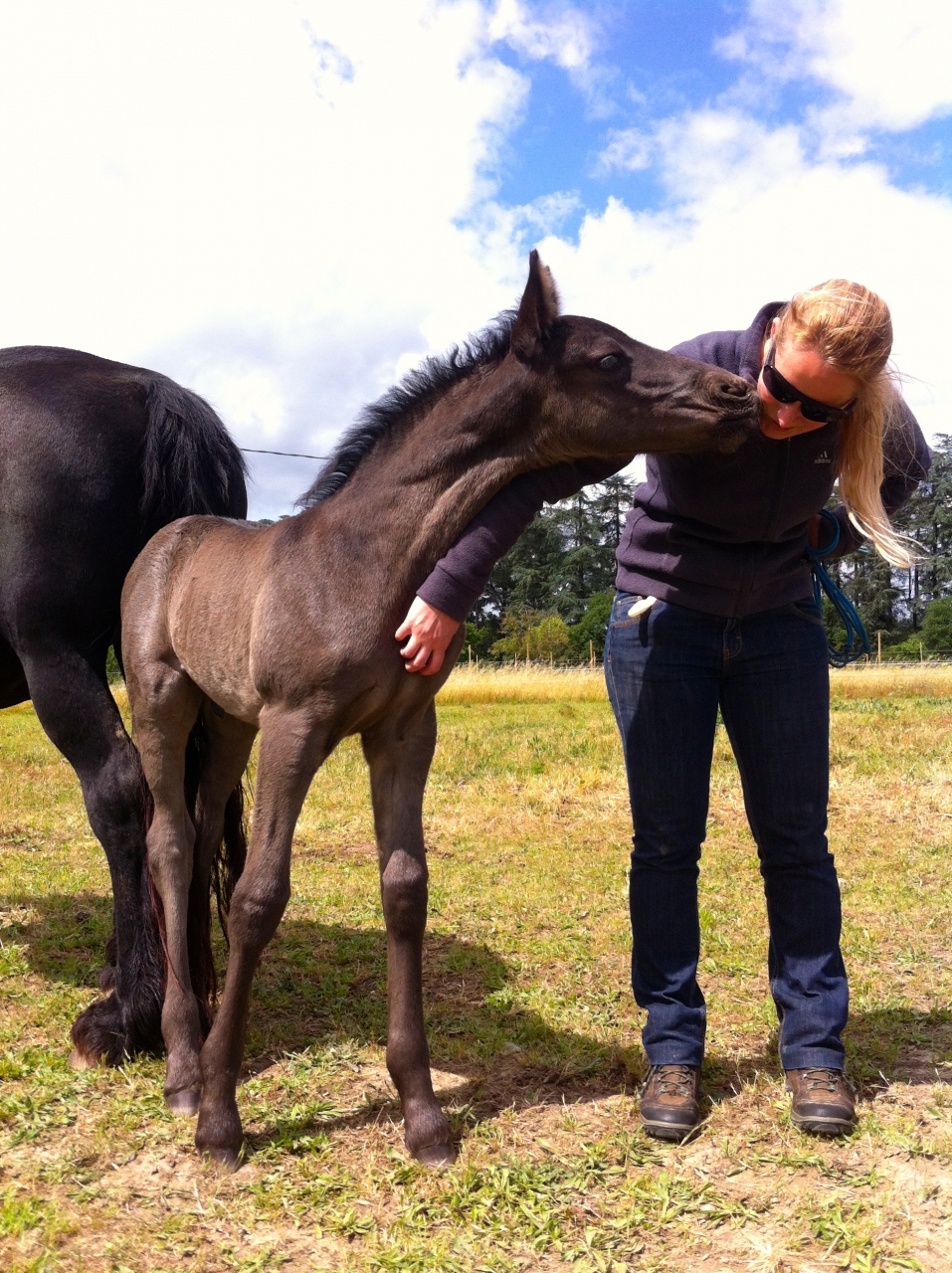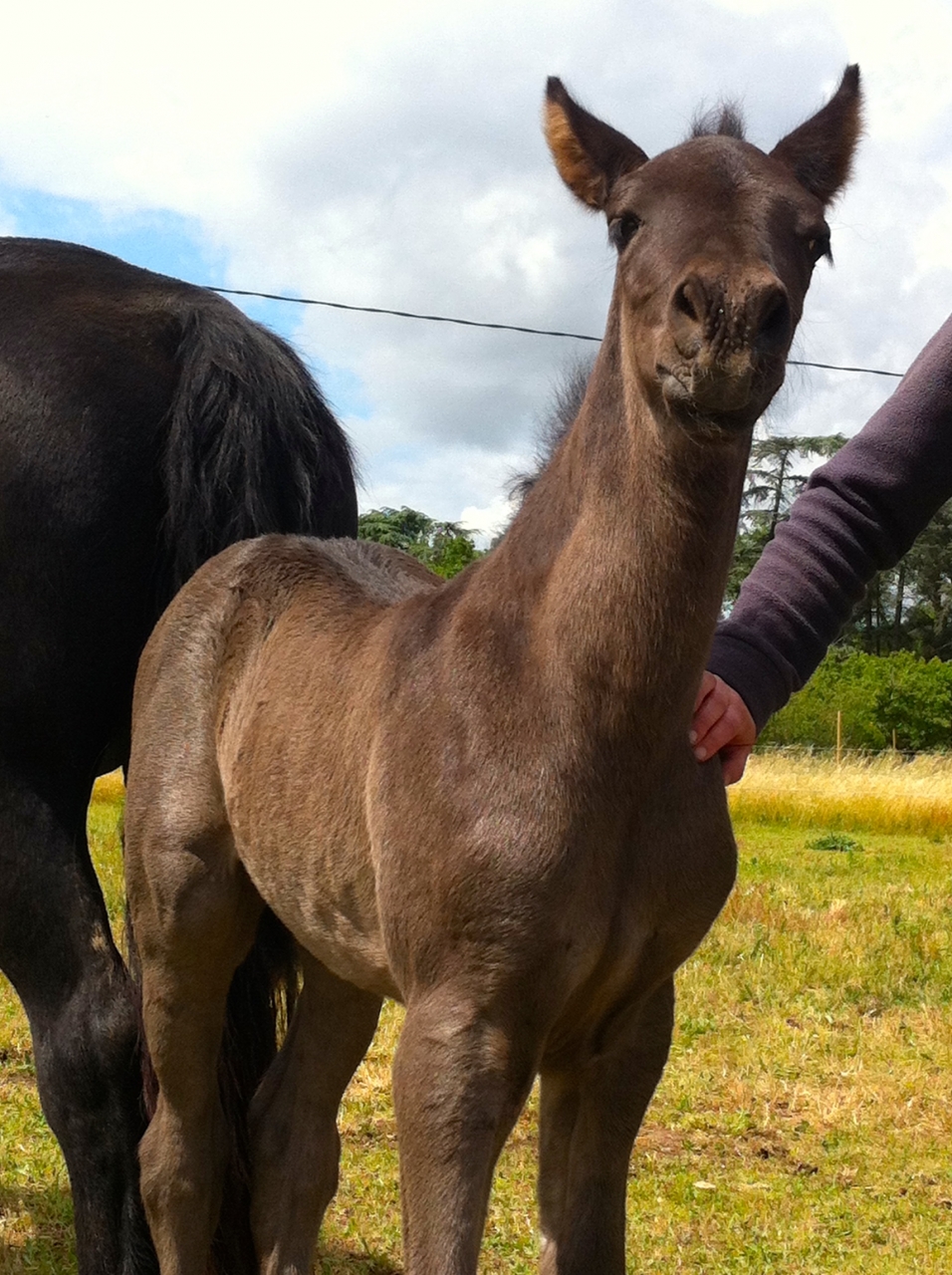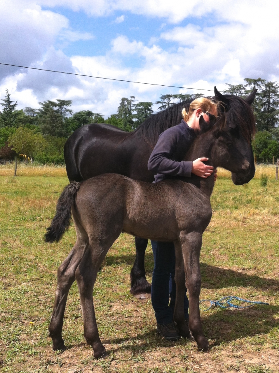 | Dire merci | Assimilee -> Gaïa fait immense (même si 1m65 c'est pas petit ^^) parce que je suis petite (1m54) En tout cas naissance très sympa !! Pour une fois que je peux assister à la totalité d'une naissance, c'était juste génial. Merci pour les moments que tu me permets de vivre Al, j'ai encore plein de choses à raconter maintenant !Galàane est, sans surprise j'ai envie de dire, un poulain bisounours plein de vie et adorant déjà les gratouilles (ooooh les oreilles, ooooh le poitrail, ooop les fesses !!) |