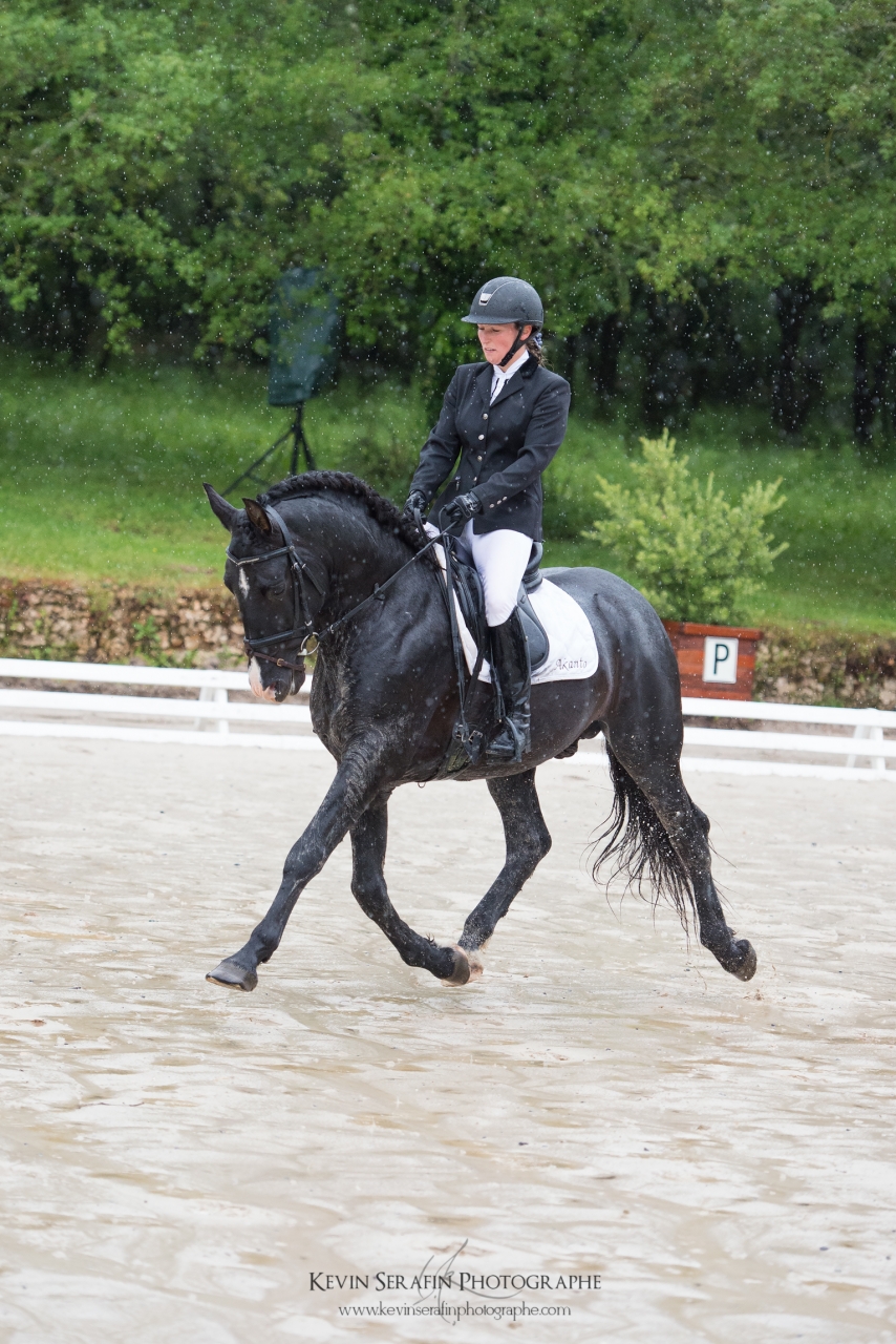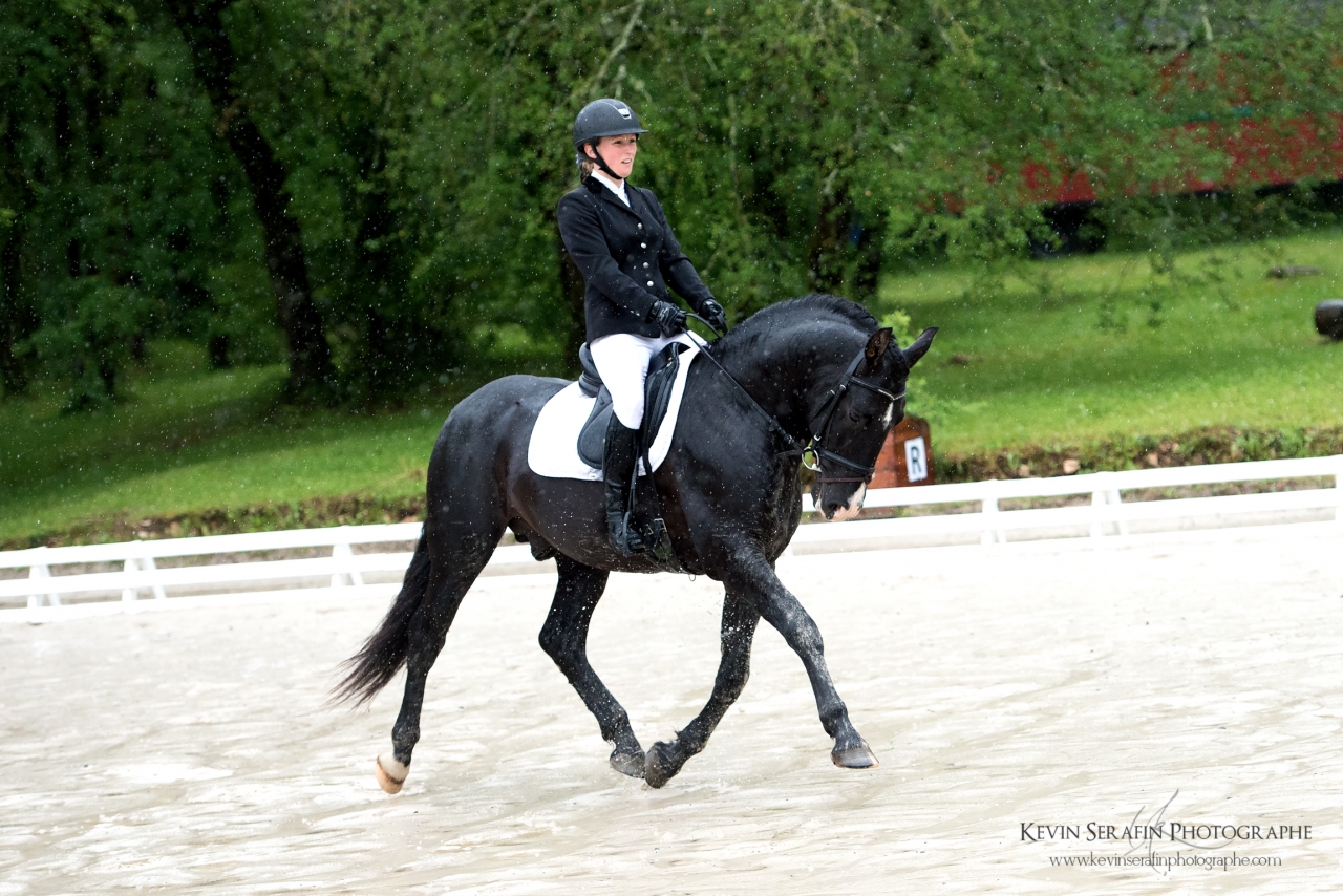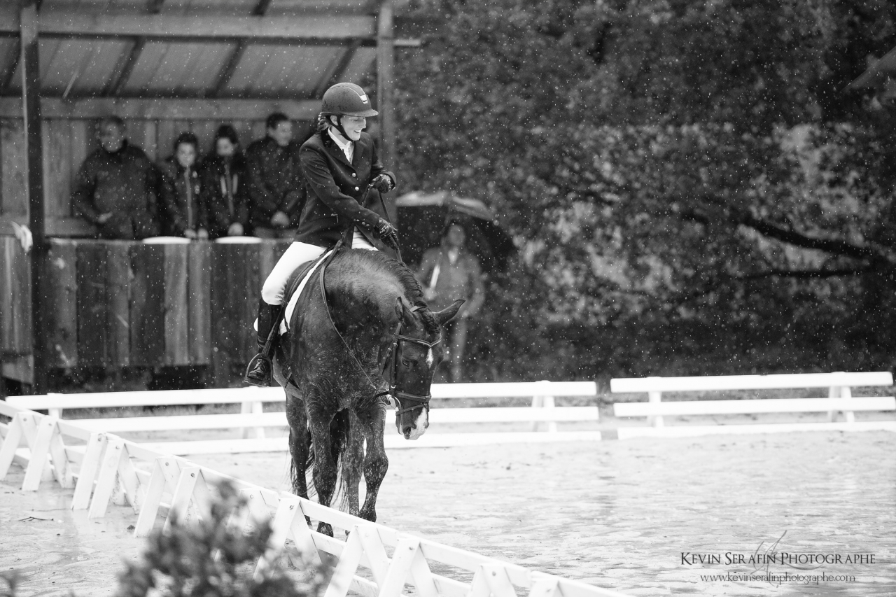 | Dire merci | Alors alors.... de retour de ce week end fort sympathique (et qui permet de se changer grandement les idées, ça fait un bien fou!) dans une ambiance champêtre mais très sympa! Nous sommes donc partis samedi matin, direction Ginouillac dans le Lot, pour les épreuves habituelles (cyles libres 2e année préliminaire + finale) En voiture à 6h du matin, Kevin Sérafin (un jeune photographe très talentueux ), C. et moi...la fine équipe, quoi ![]() Un magnifique samedi, très ensoleillé, détente dans la carrière secondaire et passage dans la carrière principale.... Mais la carrière secondaire était assez en pente, C. a eu du mal à obtenir la fixité sur laquelle ils avaient fait de gros progrès récemment..... du coup, pas en confiance, pas énormément d'engagement.... un "petit" 70%, histoire de récompenser l'excellent comportement d'Akanto sur la reprise (apparemment la plupart des autres concurrents s'étaient un peu lâchés....)l'après-midi, rien à faire sur le site, du coup je me propose comme scribe pour juge, je me retrouve avec M. Maurel, qui, en plus de son savoir impressionnant, est hyper pédagogue Pas vu grand chose des prestations des participants, mais j'ai appris des tas de choses ![]() Une soirée super sympa, malgré les orages.... et le lendemain...les trombes d'eau.... On se prépare viteuf, poulichon fait une tête toute triste, visiblement il n'est pas du tout pressé de sortir de son box... (même si le fond du box était trempé car l'eau avait ruisselé... mais bon, il a dormi couché quand même )Détente dans le manège cette fois-ci, et passage sous une pluie diluvienne.... et..... un poulichon EXTRA! Pas hyper motivé, ça se traduit dans ses allures, mais du très très correct....et un dernier allongement (celui vers la sortie) super!!! Encore une fois, un comportement exemplaire, des allures sympa....ça nous fait 72,6%, et donc encore une première prime! ![]() ![]() ![]() ![]() ![]() ![]() |