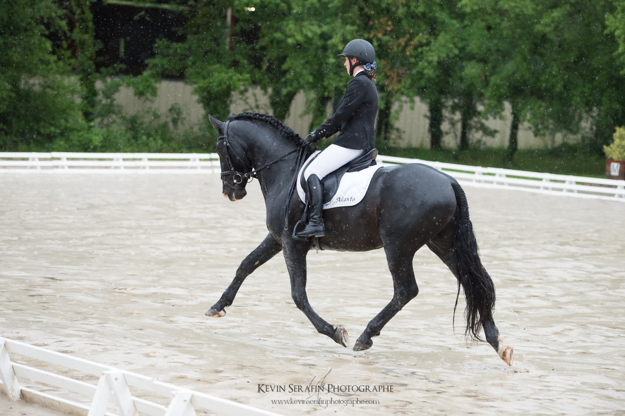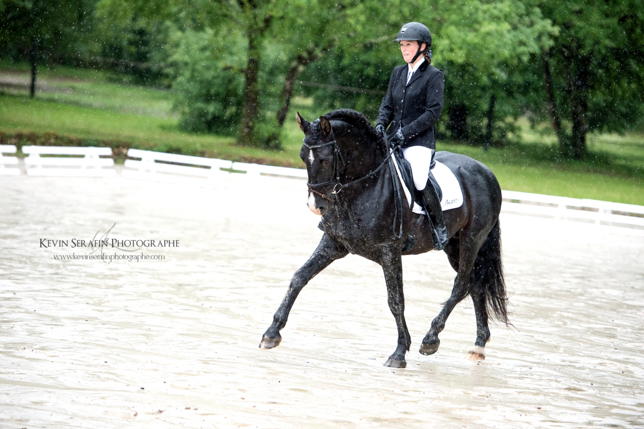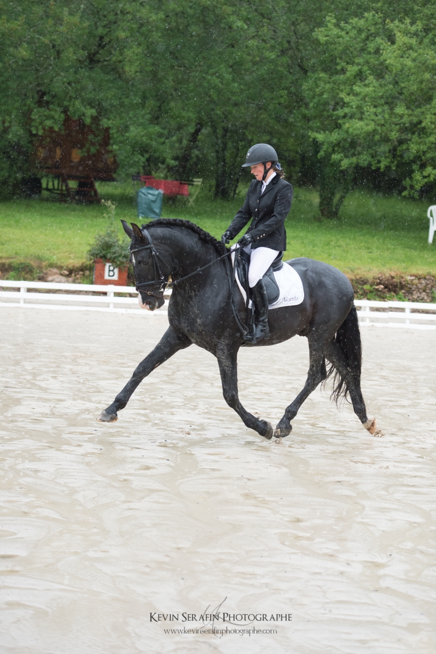 | Dire merci | Alors alors.... de retour de ce week end fort sympathique (et qui permet de se changer grandement les idées, ça fait un bien fou!) dans une ambiance champêtre mais très sympa! Nous sommes donc partis samedi matin, direction Ginouillac dans le Lot, pour les épreuves habituelles (cyles libres 2e année préliminaire + finale) En voiture à 6h du matin, Kevin Sérafin (un jeune photographe très talentueux ), C. et moi...la fine équipe, quoi ![]() Un magnifique samedi, très ensoleillé, détente dans la carrière secondaire et passage dans la carrière principale.... Mais la carrière secondaire était assez en pente, C. a eu du mal à obtenir la fixité sur laquelle ils avaient fait de gros progrès récemment..... du coup, pas en confiance, pas énormément d'engagement.... un "petit" 70%, histoire de récompenser l'excellent comportement d'Akanto sur la reprise (apparemment la plupart des autres concurrents s'étaient un peu lâchés....)l'après-midi, rien à faire sur le site, du coup je me propose comme scribe pour juge, je me retrouve avec M. Maurel, qui, en plus de son savoir impressionnant, est hyper pédagogue Pas vu grand chose des prestations des participants, mais j'ai appris des tas de choses ![]() Une soirée super sympa, malgré les orages.... et le lendemain...les trombes d'eau.... On se prépare viteuf, poulichon fait une tête toute triste, visiblement il n'est pas du tout pressé de sortir de son box... (même si le fond du box était trempé car l'eau avait ruisselé... mais bon, il a dormi couché quand même )Détente dans le manège cette fois-ci, et passage sous une pluie diluvienne.... et..... un poulichon EXTRA! Pas hyper motivé, ça se traduit dans ses allures, mais du très très correct....et un dernier allongement (celui vers la sortie) super!!! Encore une fois, un comportement exemplaire, des allures sympa....ça nous fait 72,6%, et donc encore une première prime! ![]() ![]() ![]() ![]() ![]() ![]() |