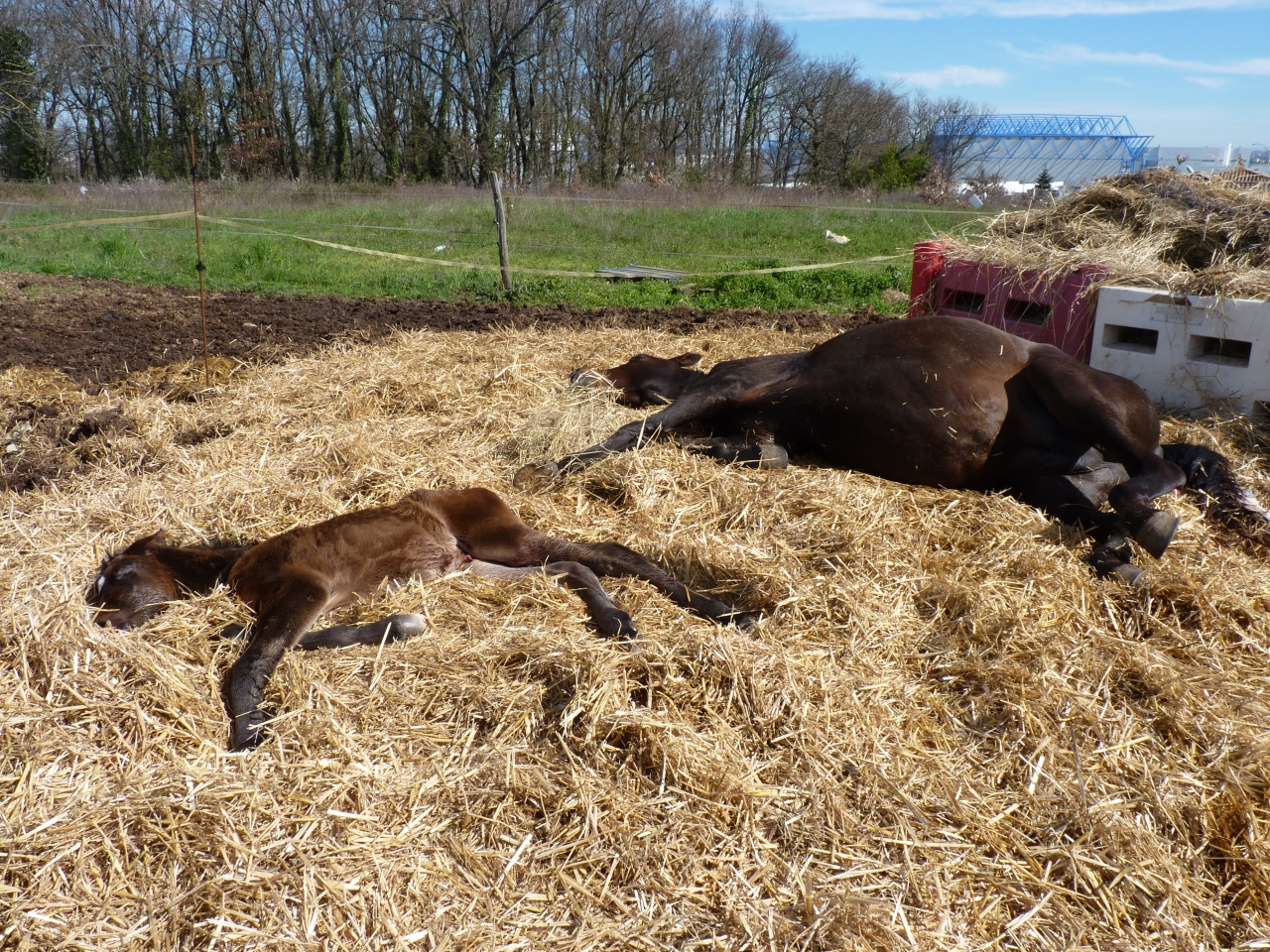 | Dire merci | oui oui, ho, ça va Alors alors...le troupeau s'est un peu agrandi récemment ![]() Eléa a mis au monde Hestia d'Auréa, sa 3e fille avec Akanto (oui, mes juments aiment la régularité ) le 7 mars à 02h45...![]() Une belle pouliche alezane, probablement crins lavés comme sa soeur Faline, toute poilue, et tèèèèèllement mignonne ![]() Sans surprise, elle est aussi câline que ses grandes soeurs, et elle a aussi le "mode d'emploi intégré", petite pouliche parfaite en somme ![]() mon chéri l'a photographiée avant hier, pour son 3e jours sur terre.... ![]() Quant à Lebrera, elle nous a présenté Hadonis d'Auréa, (ENCORE) un mâle, en plein jour, à 12h45, sous un superbe soleil et entourée de sa "famille" et de quelques humains curieux. Elle est géniale pour ça ma louloute, pas perturbée pour un sou par les humains, par contre elle a bien compris qu'on était utiles on surveille bébé pendant qu'il se lève, comme ça elle peut se reposer tranquillement, on le lui apporte devant son nez comme ça elle n'a pas à bouger pour lécher son poulain, elle tend l'encolure, elle a à boire et à manger, elle n'a pas besoin de s'interposer avec Akanto (curieux comme d'hab ), on le fait pour elle....bref, hier j'étais sage-femme/babysitter/garde du corps de sa majesté ![]() Et tout ça pour nous présenter son bel Hadonis ![]() ![]() ![]() échouage de baleines.... ![]() (il s'était pas encore levé à ce moment-là!) Bref, je suis sur un petit nuage |