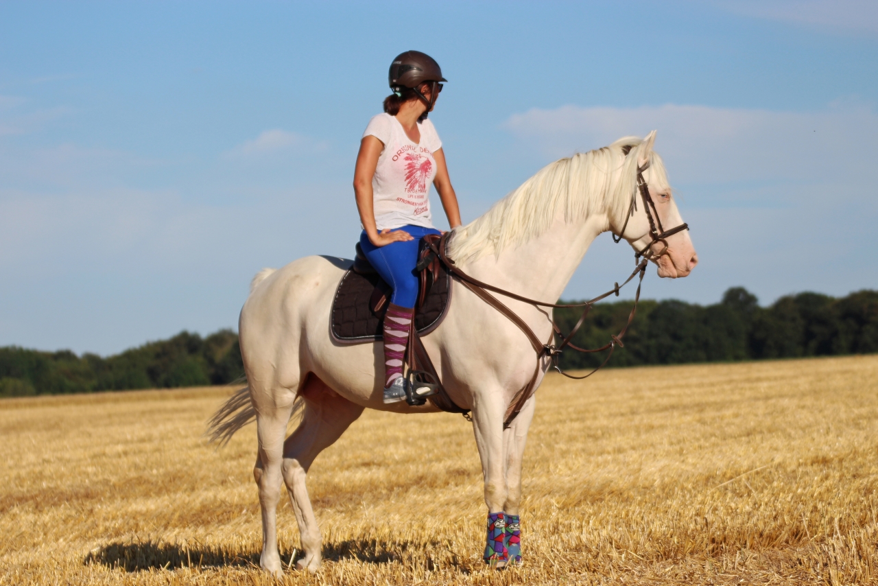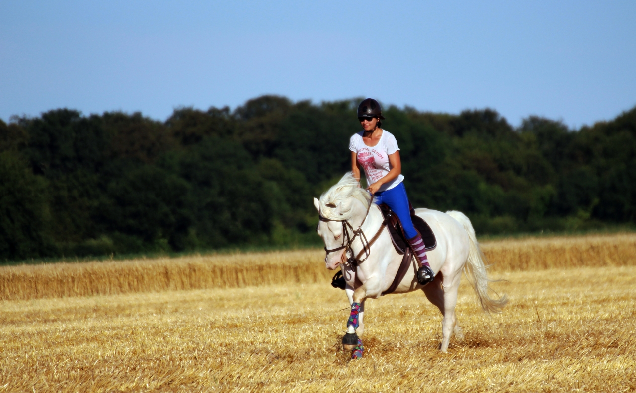 | Dire merci | J'ai un peu de temps devant moi Blue reprend le travail mais j'ai la crise d'ado qui pointe son nez on c'est fait un plaisir dernièrement j'ai investi dans une selle de dressage zaldi un fauteuil J'arrive à commencer à le tendre ses départs au galop sont impeccable et il me fait de belles épaules en dedans, et appuyer au pas. Les filles ne glandent rien , princesse a "repris " hier je l'ai monté une demi heure sur une piste je me suis fait plaisir elle était sur du 220, j'ai une video mais je ne sais pas la mettre ... Quelques photos de la photographe ( du 24 aout ) ![]() ![]() Petite anecdote avoir les trois sur la même photo fut sportif car princesse avait des énormes chaleurs elle passait son temps à envoyer des jets a blue qui sortait juste de période de saillie ![]() ![]() ![]() Et quelques photos du moment ![]() ![]() ![]() |