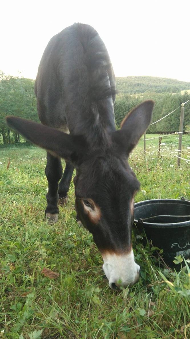 | Dire merci | L'avantage c'est qu'il a jamais sailli car il a jamais été en contact avec d'autres ânes ou chevaux |