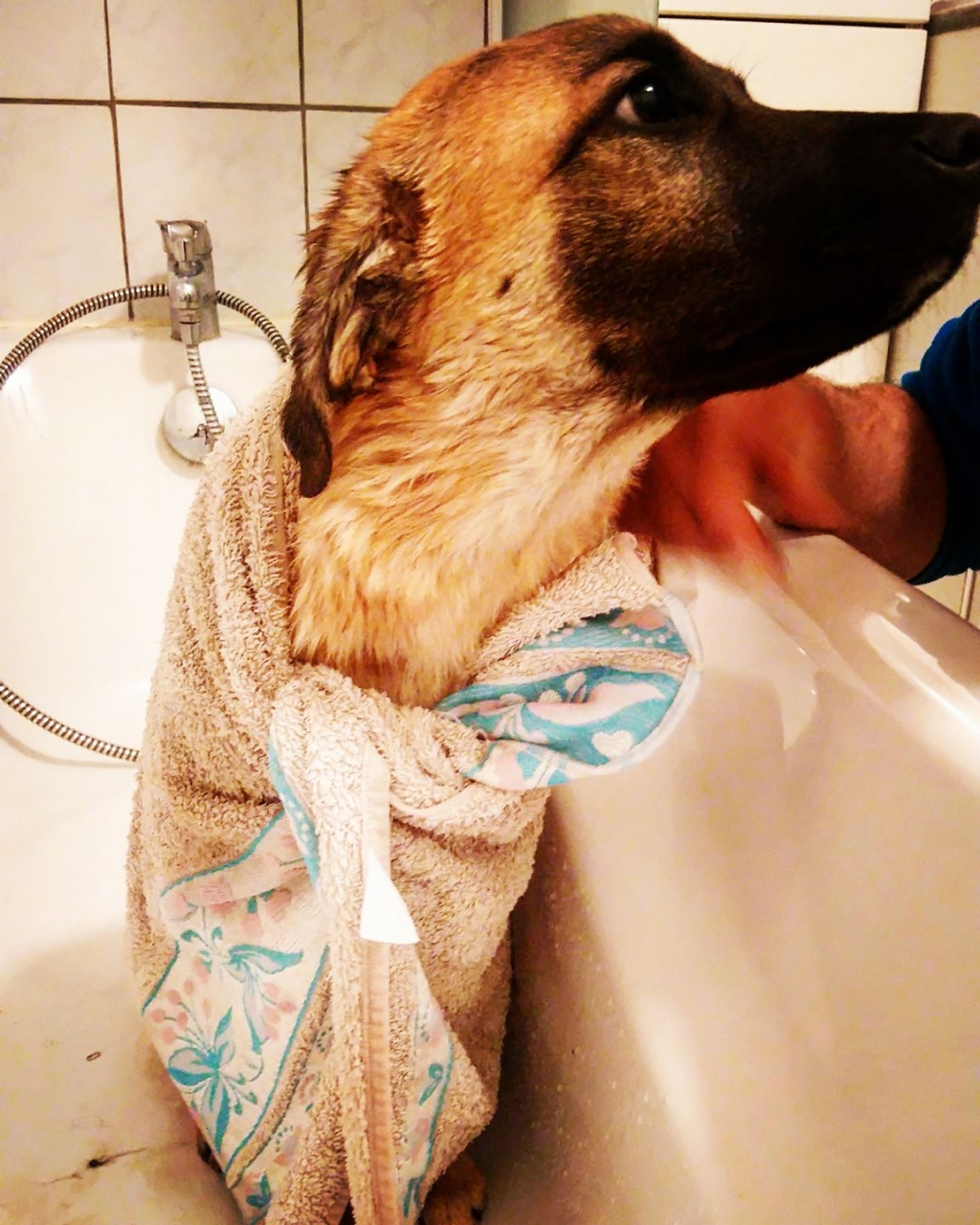 | Dire merci | Malko a compris que c'était trop bien de se rouler dans des charognes ![]() 3ème bain en 1 semaine ![]() Du coup il est désensibilisé ![]() |
