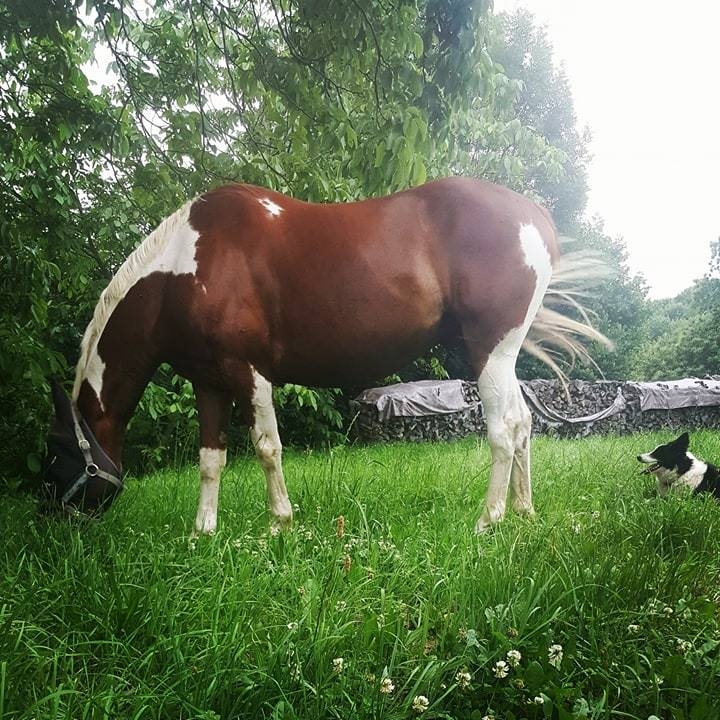 | Dire merci | Quelques nouvelles Changement de pré des loulous n'étaient contents Pas de grosse sortie au final car il faisait vraiment trop chaud... malgré cela, Lady et Navire étaient ultra motivés Scooper trottinait parfois derrière pour rattraper les grands qui avaient décidé d'avoir un pas allongéééééééééééééééé Lady en mode guerrière au départ de la balade ... on était devant dans le village, un exploit bon ok, ça a pas duré Bref changement de pré fait, chevaux contents, Lady encore plus car elle a son ruisseau où je sens qu'elle va aller s'y rouler souvent Ce soir, Cours collectifs avec Scooper |