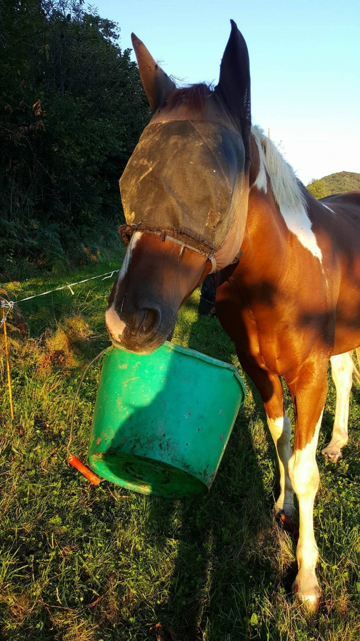 | Dire merci | J'allais te rejoindre pour le club des chevaux-qui-toussent, sauf que ça y est, les miens ne toussent plus Lumineuse et Doudou ont commencé à tousser dans la pension, où il y avait pas mal de poussière et où elles étaient au foin. Trois jours après (le 15 août), j'ai pu les ramener aux Granges, où il reste de l'herbe, et ça commençait à aller tout de suite mieux. J'ai quand même dû faire des piqures de Dexaméthasone (corticostéroïde) pendant 5 jours à Lumi, qui avait un peu d’œdème aux poumons. Pour Doudou la toux est passée toute seule avec le retour à l'herbe, ouf ![]() Les deux autres sont toujours en centre de détention, mais pas de souci de toux |