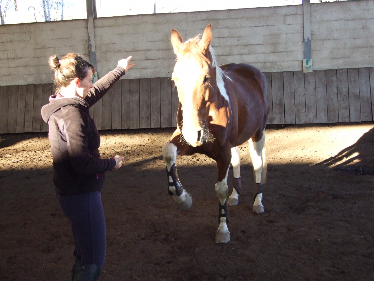 et lui, une fois en reprise derrière les copains au trot, était exécrable à vouloir monter sur le cheval de devant