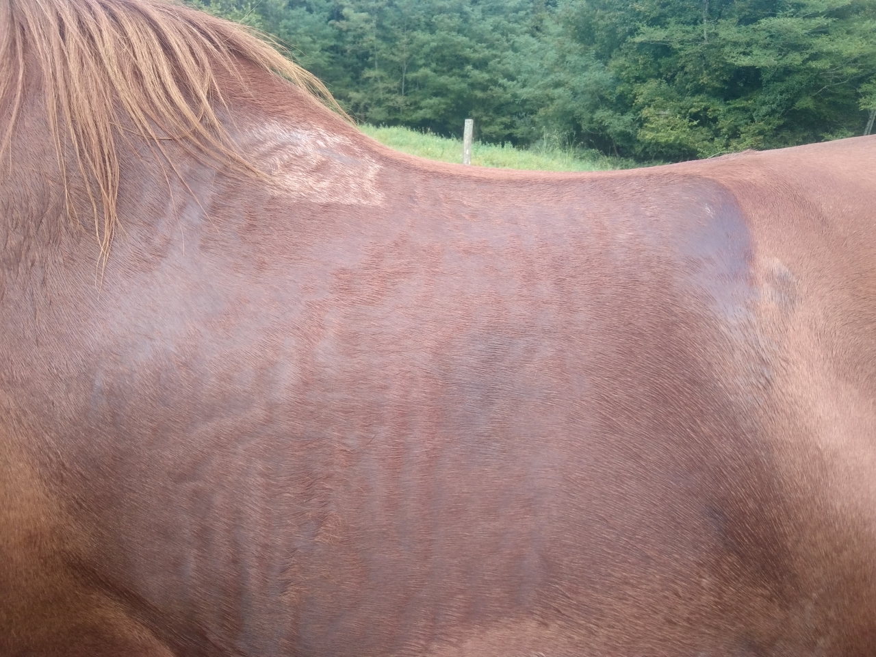 | Dire merci | Aujourd'hui course automobile à 50m du pré, j avais été avant la course, puis route bloquée donc impossible, bon il a du courrier un moment, je l ai trouvé plein de transpi sèche, son pote de pré dix fois pire... Bon du coup j ai juste mis la crème et je l ai laissé tranquille... |
