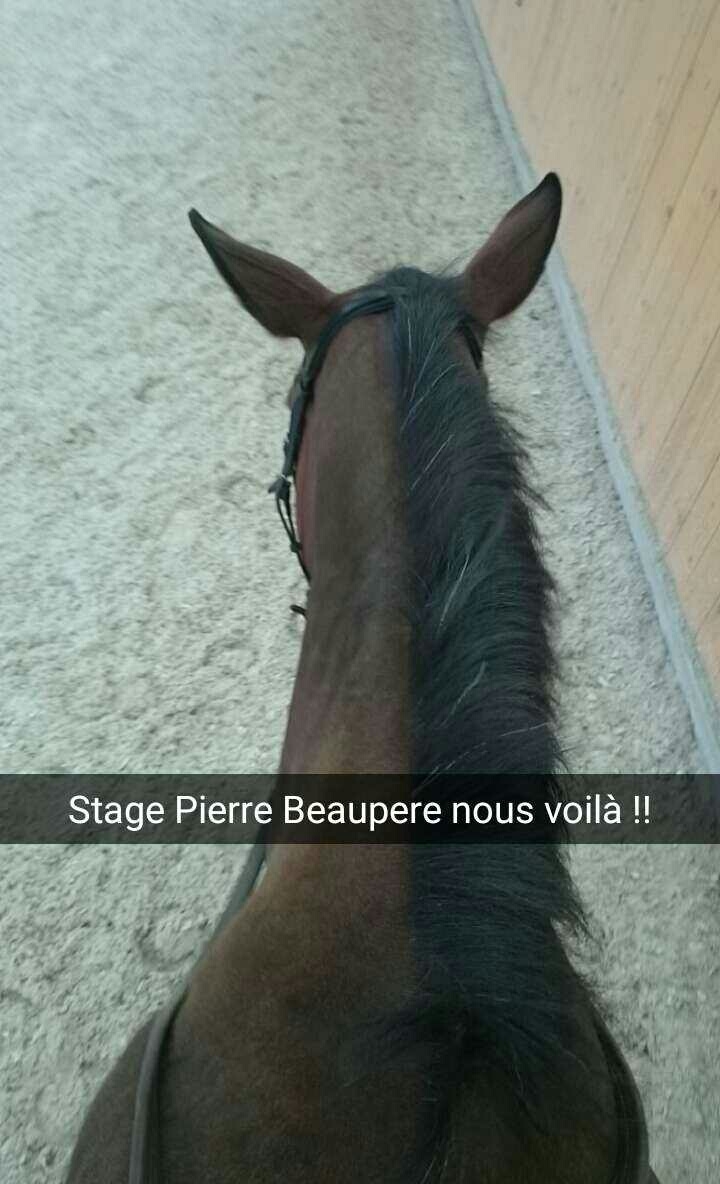 | Dire merci2 | Toutes les 10-15 minutes : récompenses pas rênes longues et actif laurebrrrrr j'ai pensé à toi j'ai demandé l'intérêt de l'exo Donc en fait c'est pour avoir de l'énergie de la part du cheval, juste de l'énergie, qu'on va utiliser ensuite lorsqu'on va lui demander de venir se tenir Donc "juste" une pause, mais le cheval doit garder en tête que l'impulsion c'est pas un exercice que ça doit être donner tous le temps !! En tout cas chouette ! le stage ! |