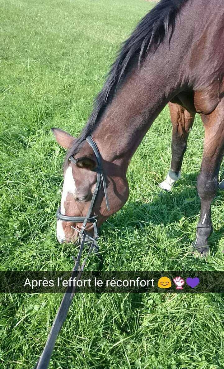 | Dire merci | MDR excellent la logique des poneys quoi !Sur un carré ? Genre de quelle taille ? Tu le matérialises avec des barres ? Ca m'intéresse 13/10/16 A la base, je voulais pas monter aujourd'hui, la flemme ![]() Finalement je me suis motivée, car ils veulent de la pluie demain et que je préfère pas me faire saucer Je prévois de pas monter longtemps (cf régulièrement mais pas forcément longtemps) Grodou qui répond bien, mais ça manque un poil d'énergie (j'ai appris par la suite qu'il a fait le cake au parc, ça a du le fatiguer le pauvre ), et il rechigne (passivement hein ) à vouloir s'enclencher. Globalement, ça a été une mes quinze-vingt dernières séances où il était le plus sous le train, pas catastrophique, mais par rapport à ce à quoi je m'étais habituée... ![]() Rien de neuf sous le soleil, on travaille notre petite gymnastique Comme pas trop d'énergie il a tendance à treuiller un peu plus (mais rien à voir avec à l'époque), du coup on fait des reculers : là je suis contente car il s'ouvre quasiment pluuus ! 85% il était bien, la bouche disponible et pas figé sur le mors ! Victoire Un peu de trot gentiment, contre épaules et flexion + variations dans l'allure Galop, contre-galop à chaque main, et pour changer je transitionne au trot et plus au pas : parce qu'à force de demander beaucoup de galop/pas j'ai tendance à transitionner trop fort, et une fois je me suis fais avoir LOL Pause et un coup de sans pédales. Travail latéral, contre épaules et eed Une EED au trot correcte à main droite, je change de main, je demande à main gauche, il m'a sorti 4 foulées juste EXTRA, mieux qu'avec les étriers plus tôt et une des plus belles je pense qu'on a pu avoir, je redresse, arrêt et je descends, je dessangle, on va brouter Bon, faut vraiment que je trouve un moyen de me filmer, je suis frustrééée |
