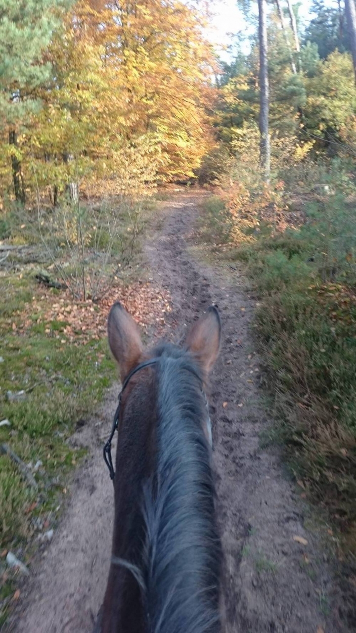 | Dire merci | 01/11/2016 Aujourd'hui balade en forêt ! Nous sommes allés du côté du cross, qui est malheureusement laissé en friche, mais c'est la plus jolie partie de la forêt je trouve Bon, le but c'est pas d'y aller pour crosser, mais de profiter du terrain pour piquer quelques galops et s'amuser dans les dénivelés "montagnes russes" Nous étions accompagnés de la chéri du gros (la petite grise qui va au parc avec lui), c'était chouette, ils étaient tous content On a beaucoup marché, trotté un peu et on s'est fait plaisir sur un super galop, où le gros était au taquet, je le laissais faire je veillais juste à avoir du contrôle au cas où et qu'il se tienne (et là pas de souci youpi !) AH et à un moment un mini tronc barrait la route, contournable de côté; à l'aller on l'a contournée, au retour ma copine voulait le passer au trot avec sa jument, pas de souci je fais le tour mais dès que le gros a vu sa chérie y aller, comment dire... ![]() Il m'a pas trop laissée le choix, il l'a suivie, au galop forcément, heureux comme tout bon j'étais fâchée d'un côté car il a fait sa life sans m'écouter (ok j'avais les rênes longues), mais de l'autre ça lui a fait méga plaisir alors j'ai laissé faire... Grodou va Les couleurs étaient fantastiques, le ciel bleu, bref le bonheur J'adore l'automne quand c'est comme ça ! ![]() Après ça petit brouting, séchante pendant les soins post monte (heureusement il a transpiré qu'au niveau des épaules et passage de sangle), carottes et bonne nuit gros nez ! |