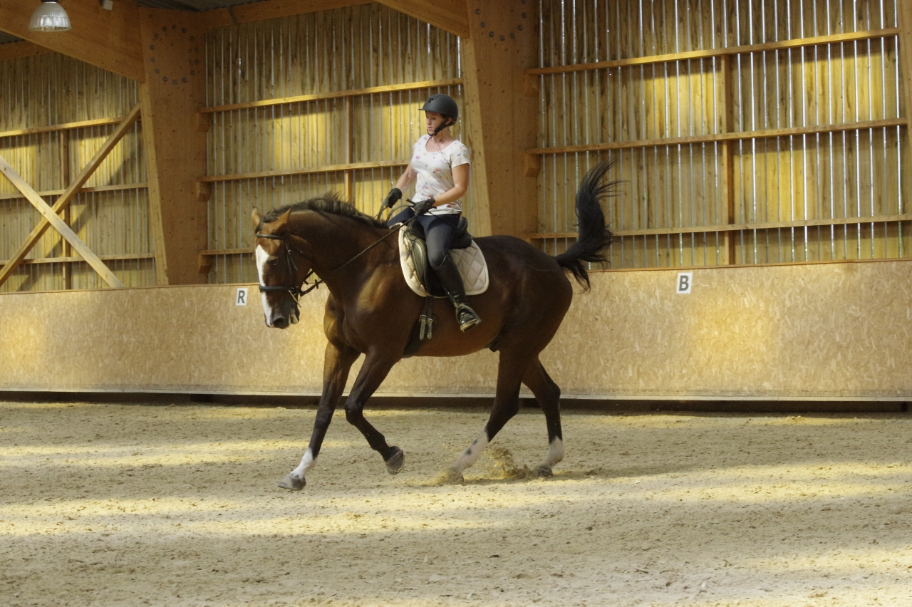 | Dire merci | News Quelques petites nouvelles... Doudou va super bien, la grande forme il est beauuuuuuVendredi dernier, stage de posturologie, sur simulateur Bilan : mes jambes sont bien plus à leur place, attention j'ai la jambe droite qui s'avance un peu. Penser à garder la ceinture qui monte et la fesse qui descend ! A plus plier le genoux et être sur mes pieds. Travail de l'ouverture de la hanche aussi, notamment au galop.. Bref c'était super chouette, j'ai senti des choses, mais j'étais en liquéfaction il faisait louuuurd Prochain stage, je vais voir pour faire la séance à cheval avec Kazan aussi - là vu qu'on avait stage avec Sara qui suivait les deux jours d'après, ça aurait fait beaucoup Samedi / dimanche : stage Sara On continue sur notre lancée, l'attitude du gros est vachement mieux (au trot et galop), il a gagné en rayon et en rebond J'étais super heureuse, Sara nous a félicité, et nous donne sa bénédiction pour le monter en bride la prochaine fois (début octobre) ! Une petite photo, honnêtement j'ai du mal à croire que c'est nous ![]() |