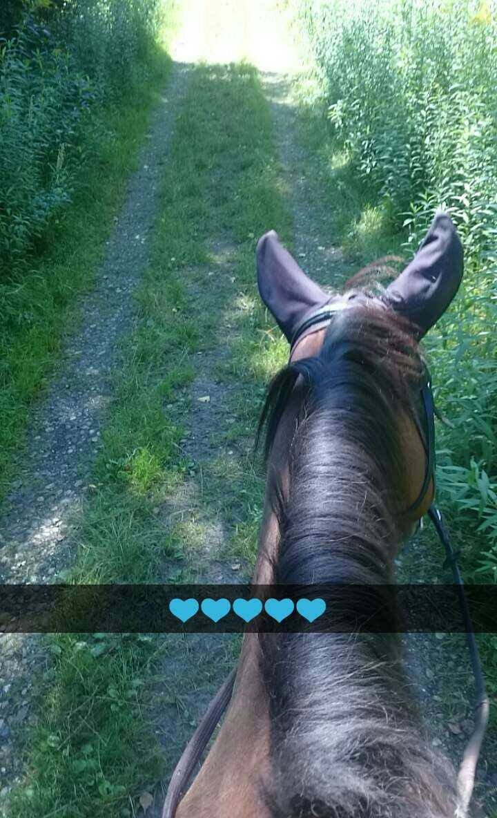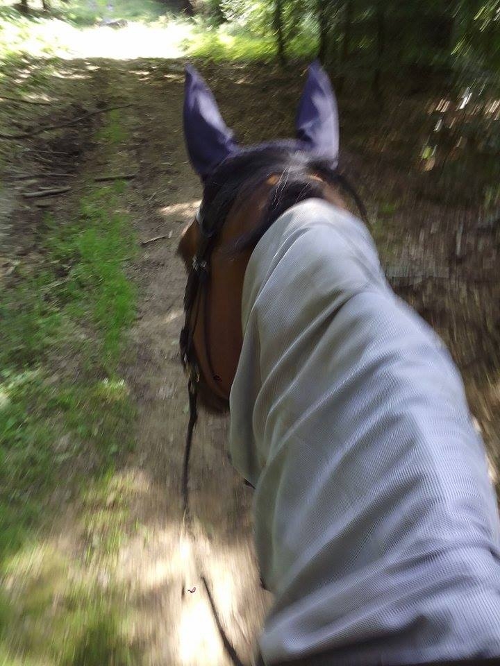| Dire merci | Plus de 30 c'est l'horreur absolue J'espère que rien de grave pour ta Noire Aujourd'hui je voulais monter sur le plat et en fait non : carrière plutôt poussiéreuse, chaleur, et cheval en liberté dedans, la flemme de le rentrer etc Finalement je selle et on est partis en forêt ![]() C'était sympa comme tout, ça faisait un moment, gros était au taquet ! Petit trotting au frais, on a piqué un bon galop, c'était chouette ![]() |