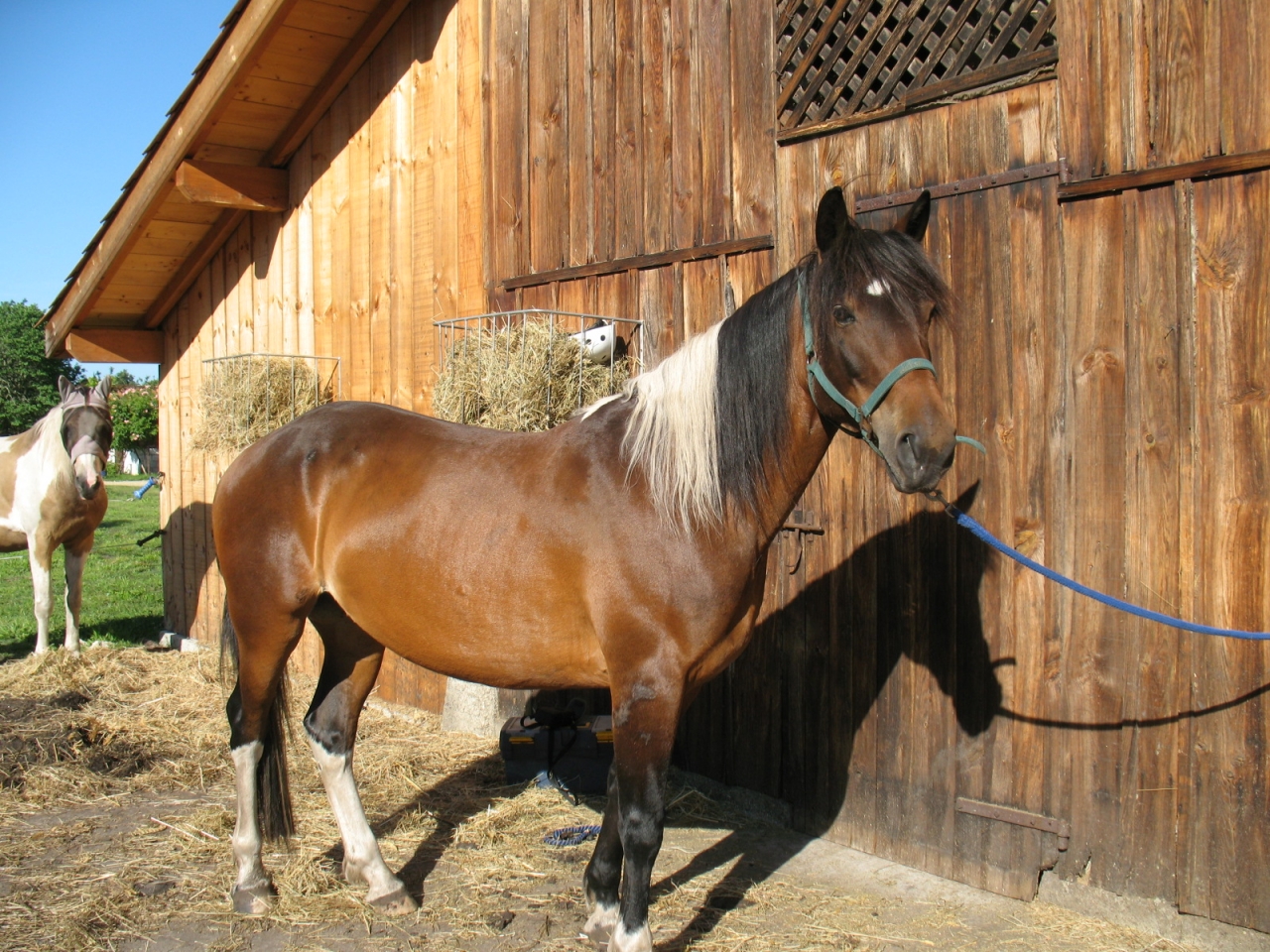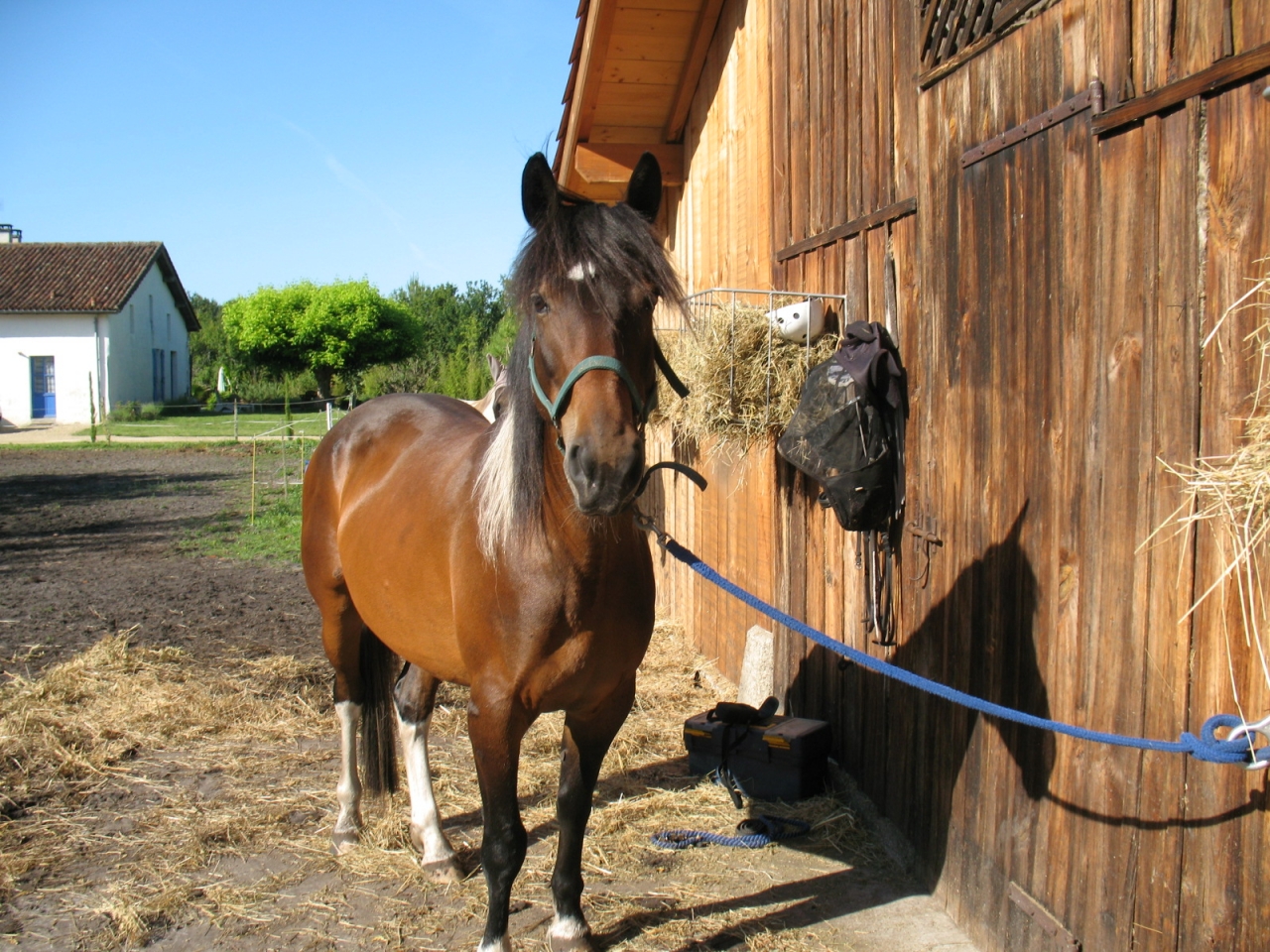 | Dire merci | bonjour tout le monde, je fais un nouveau poste, de un parce que sur le forum cheval, personne ne va nous voir, et de deux parce que Victoire sera bientôt débourrée et que c'est donc une nouvelle ère qui commence pour nous ! En résumé, il y a Auguy, 6 ans, arrivé à l'âge de un an, assurance vie, avec qui je fais des promenades deux à trois fois par semaine, toujours seul, les débuts ont été très chaud, mais ça c'était avant. Comme il était seul , je lui ai cherché un compagnon. Lilou m'a invitée à venir voir sa petite Esmérada, et là, boum paf, j'étais cuite. Elle arrive chez nous au sevrage, huit mois, et la, déconfiture, Auguy n'en veut pas. Agressif, menaçant, la petite est terrorisée. Après, deux mois, sans amélioration, séparés par un fil, la petite est toute triste et seule.... Donc, je lui cherche une nounou, et ce sera Victoire Chance, double ponette de six ans, sauvée par Zorte Berria, à l'âge de deux ans, abandonnée dans un champ, presque morte de faim. Il leur aura fallu quatre ans de soin, d'attention, avec une volonté sans faille pour lui redonner goût à la vie et faire d'elle la Vic que je connais. Voilou, tout ce petit monde s'entend maintenant à merveille, et cet été j'espère finir le débourrage de Vic, qui adore que l'on s'occupe d'elle. Les photos de nos débuts sont sur le forum cheval, ici je vais poster les photos actuelles. |