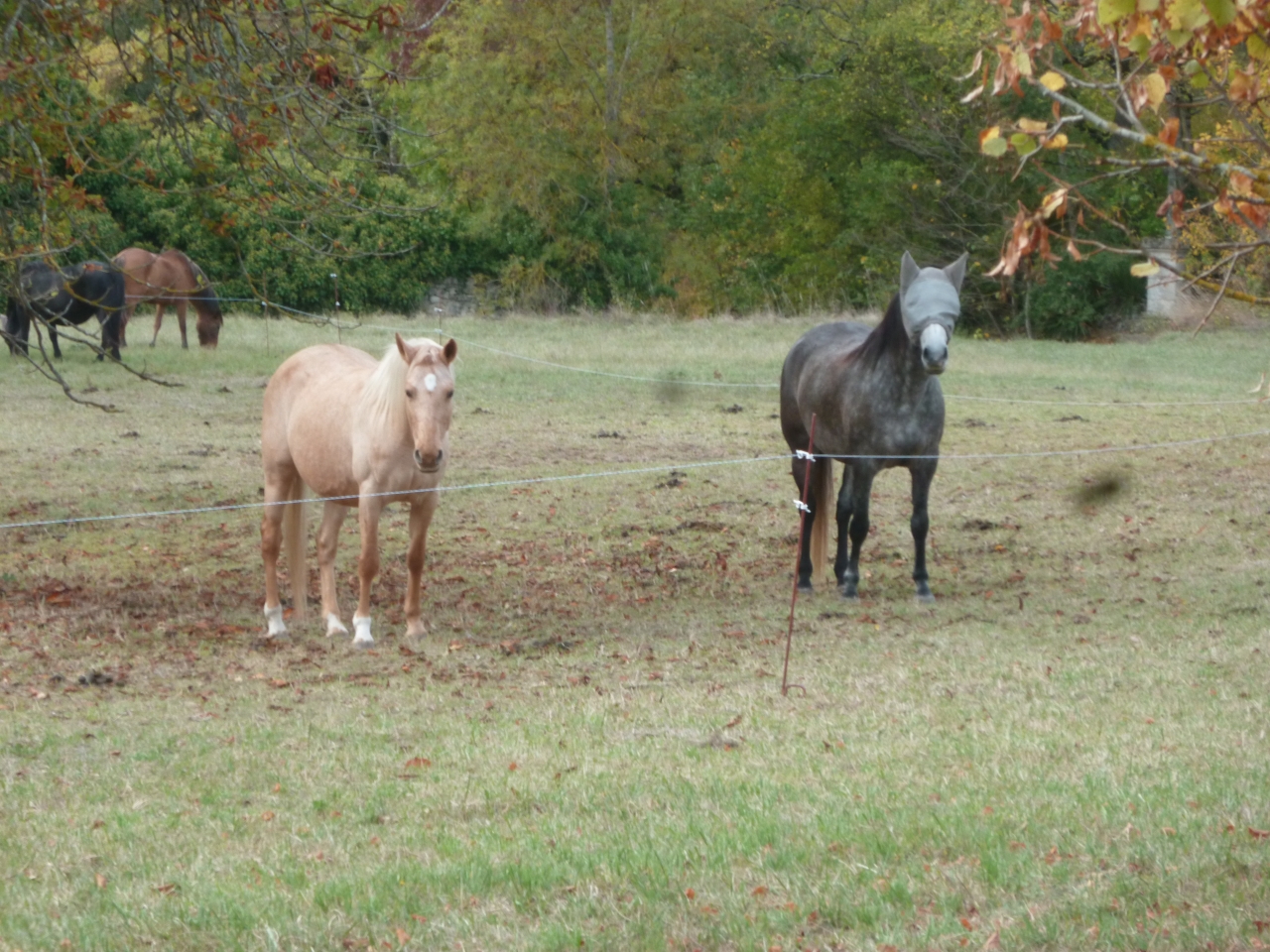 | Dire merci | Coucou le peuple, je suis de passage pour vous rassurer que les juments vont bien, en fait elles font leur vie au pré... Je n'ai pas eu le temps de remonter, je suis submergée par le travail et mes visites se résument à leur donner à boire et à manger, soigner les plaques d'aoutats quand il y en a et changer la clôture de place pour qu'elles aient toujours un peu d'herbe à mettre sous la dent... Samedi dernier le maréchal ferrant est venu donc parage pour tout le monde. Doudou a trois fourmilières, ce qui explique les seimes,et Lumi une. Le maréchal a ouvert et je continuerai à mettre de l'huile de cade. Pour l'instant donc Lumi a gagné le droit de rester au pré... comme si j'allais la monter Sinon le froid leur a touché le cerveau et elles font des aller-retour dans le pré à plein galop avec ruades (Valencia adore se donner en spectacle ). Contente d'être à pied quand je vois ça ![]() Valencia a eu très peur de Becky l'autre jour et elle m'a bousculé en me marchant sur le pied, donc grâce à elle j'ai un nouveau bleu pour la collection . Mais aujourd'hui elle m'a suivi partout comme un petit chien, pfff je ne peux même pas rester fâchée elle est tellement attachante En prévision pour la prochaine sortie (normalement M. vient monter le 1er novembre), j'ai acheté ce qu'il faut pour longer les bêtes sauvages avant de poser nos nobles popotins dessus ![]() Sinon j'ai pris des photos aujourd'hui suite à une extension XXL de leur pré. Je vais même les mettre si vous êtes sages ![]() |