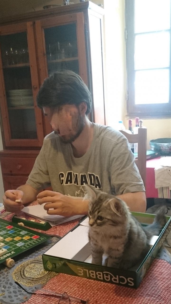 | Dire merci | Mon cadet était de passage hier et, à défaut d'un jeu d'échecs, il a dû se rabattre sur du... Scrabble. Nouchka a bien voulu l'aider, mais comme son vocabulaire est limité, il a quand même perdu ![]() |