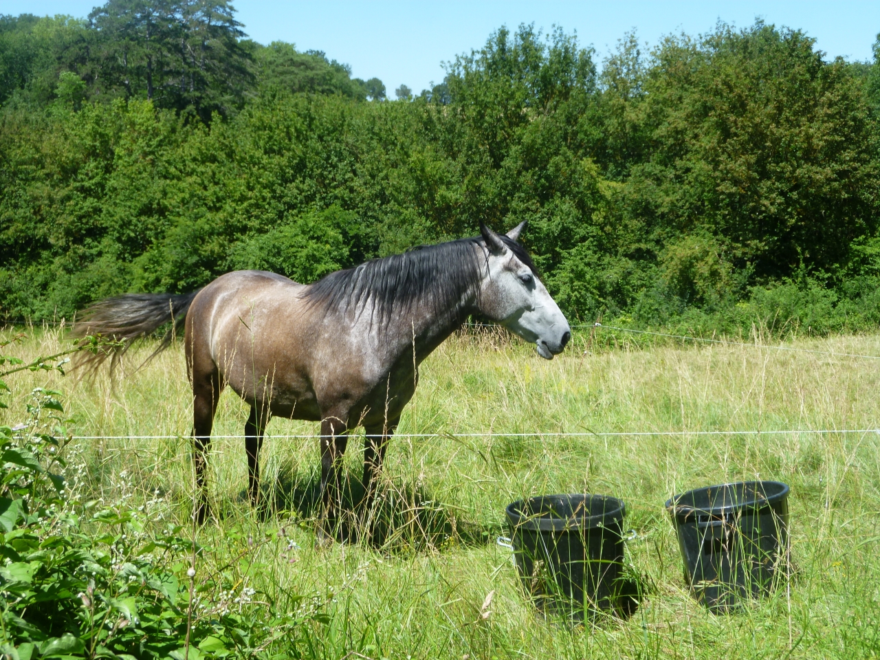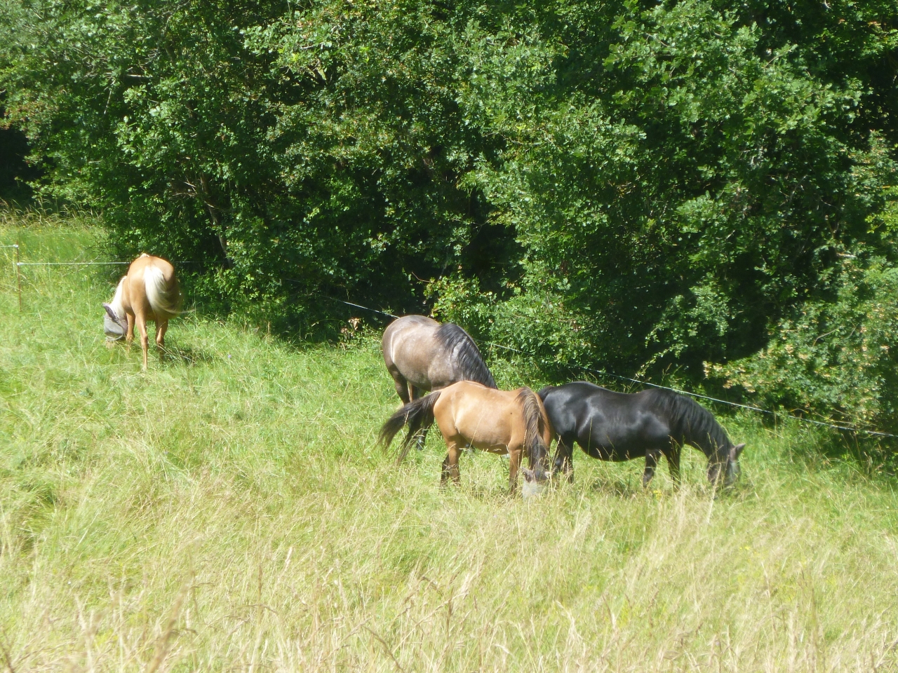 | Dire merci | chose promise, chose due... Voici les photos donc. Nouveau pré pour les juments depuis hier soir A vos lunettes, 3... 2... 1...![]() Allez, petit zoom en bas au fond... ![]() Valencia est un peu sensible au niveau des oreilles, donc je n'ai pas pu lui mettre le flymask en liberté dans le pré (puis la dernière fois elle l'a enlevé illico ) donc c'est la seule qui n'en porte pas... Vu le ruisseau et l'eau stagnante dans le coin, elles se font attaquer par les taons et bestioles en tout genre ![]() ![]() Je leur ai mis un produit à base de citronnelle mais à part me donner bonne conscience (et encore ), je ne vois pas ce que ça fait Tout le monde vient me voir (t'as pas une carotte ou deux NON ? proprio indigne )![]() avant de retrouver l'ombre et se fouetter mutuellement avec la queue... ![]() Voilà donc, rien de palpitant mais des photos quand même ![]() |