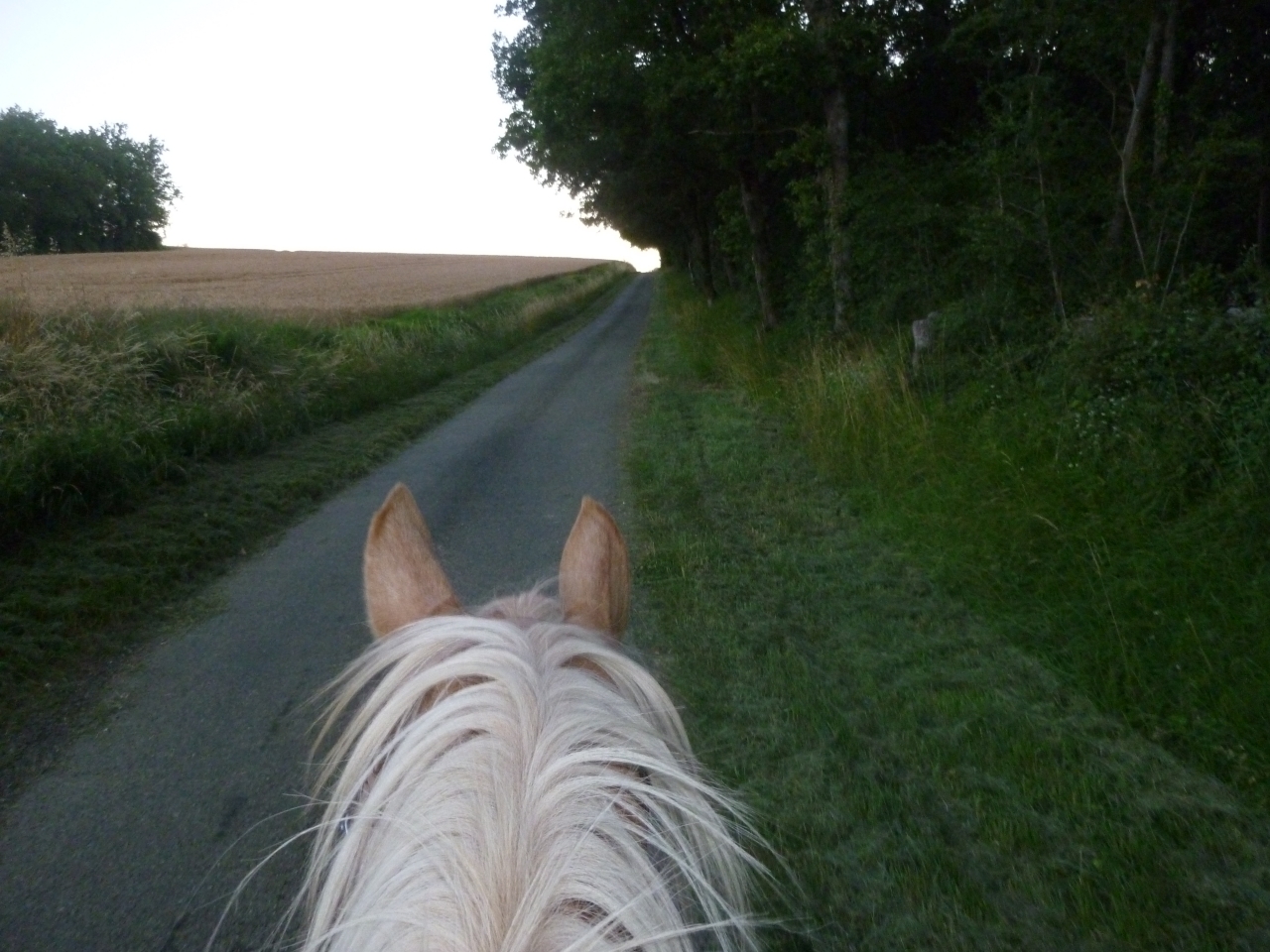 | Dire merci | ...et voilà, prom-prom terminée, on revient au départ... Bizarrement, les juments ont très bien compris la géographie des lieux et le pas devient plus enthousiaste dès qu'on se retrouve sur l'allée de retour ![]() ![]() Ptibou : M. l'a trouvé d'occas sur lbc ![]() |