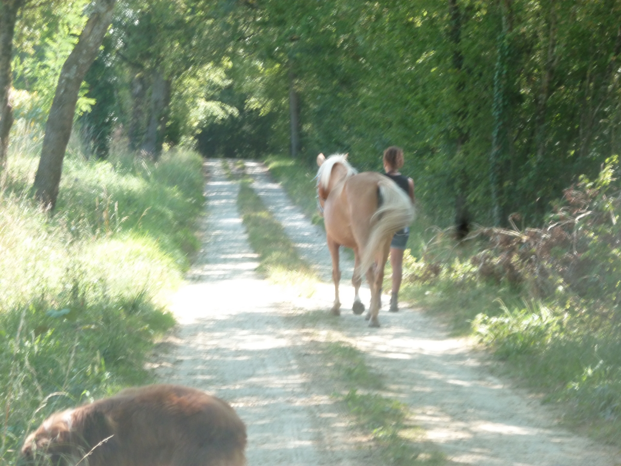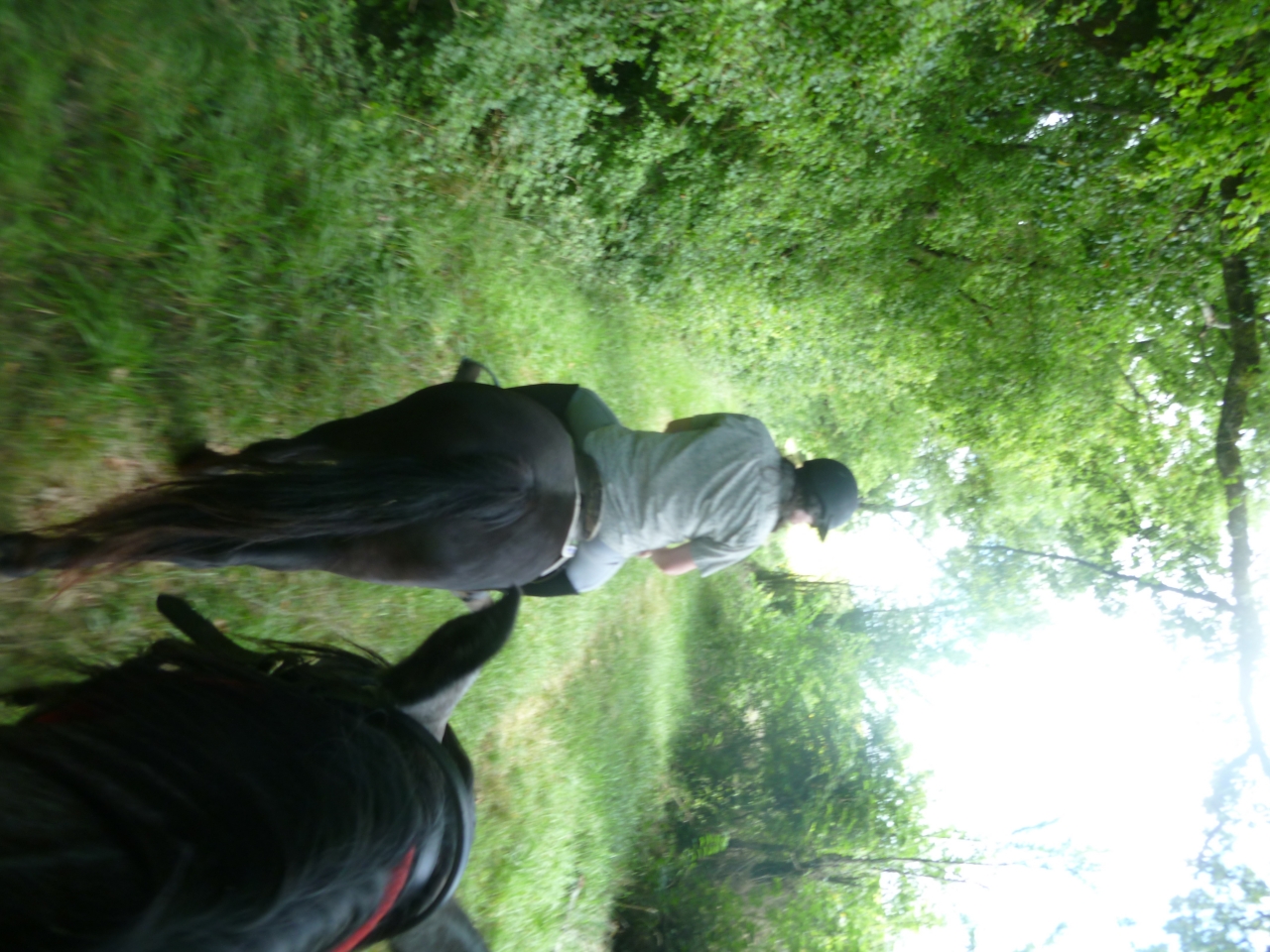 | Dire merci | Et bien, ayant vaincu le cuir d'éléphant rien ne peut nous effrayer, donc c'est parti pour une balade à cheval, yeah enfin, cheval et poney quoi ![]() car depuis le dos de Valencia, Becky a l'air d'une naine ![]() et non ce n'est pas un Shet Allez, on part sur l'allée-enherbée-qui-fait-rêver... mais la photo est renversante donc ceux qui sont sensibles du cou sont priés de s'abstenir |