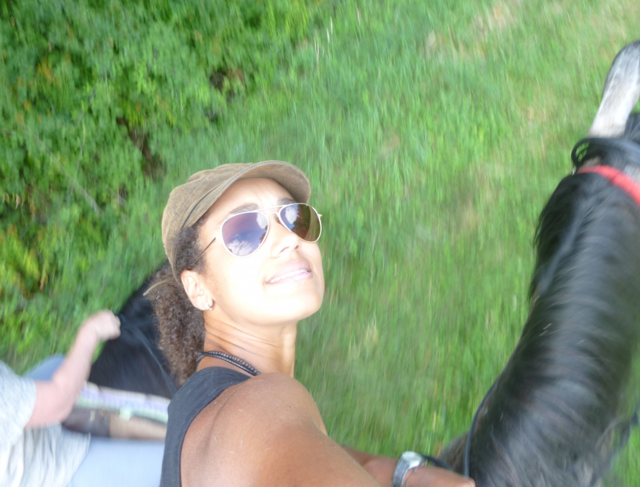 | Dire merci | Et ne vous moquez pas non plus de notre "poignée de sécurité" derrière les oreilles, on dirait qu'elle est intégrée au bridon-licol car tous deux on avait ça ![]() Bref, on continue en blablatant. Loustix commence à compter les buses puis on voit (enfin) un chevreuil (je ne lui ai pas dit que j'ai vu un 2ème l'après-midi, elle serait trop jalouse )Ici on a laissé les pauvres juments affamées prendre des forces à l'ombre car après on a galopé jusqu'en haut ![]() ![]() Loustix était tellement contente d'avoir survécu, elle s'est prise en photo pour mémoriser l'événement ![]() ![]() |