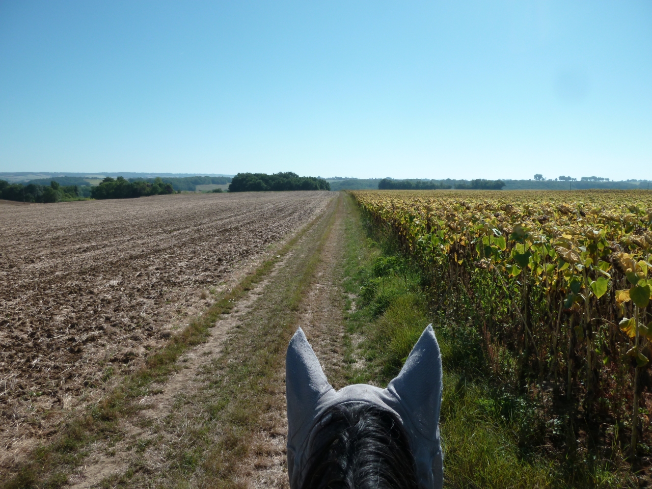 | Dire merci | Pour rappel, ma fille c'est la propriétaire de Becky donc bien évidemment elle a pris sa ponette... Mais quand nous sommes arrivées au pré, c'est Doudou qui l'a reconnue et elle est venue se coller à elle ! J'ai trouvé ça très émouvant (même si je ne suis pas une référence ; je pleure pour des Disney ) ![]() Bref, on a sorti Becky et Valencia et mis les flymask vu que les moucherons étaient aussi de sortie ![]() Becky a testé H. comme elle teste tous ses cavaliers, mais H. a eu Becky pour ses 8 ans, alors qu'elle en a 21 aujourd'hui Autant dire que ça fait des années que H. connaît sa jument, donc la période de testage n'a pas duré longtemps Elle est contente de retrouver sa Becky-becks...![]() Sinon des oreilles grises qui doivent vous être familières ![]() Quelqu’un nous suit... ![]() Encore des oreilles... ![]() Là on arrive où il y a une vue splendide à droite... mais difficile à capter avec l'APN, surtout que le mien montre des signes de faiblesse depuis deux semaines ![]() ![]() |