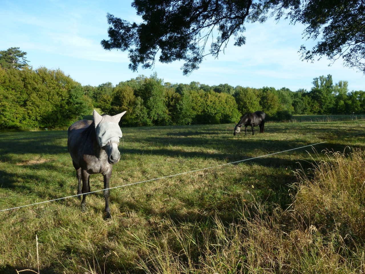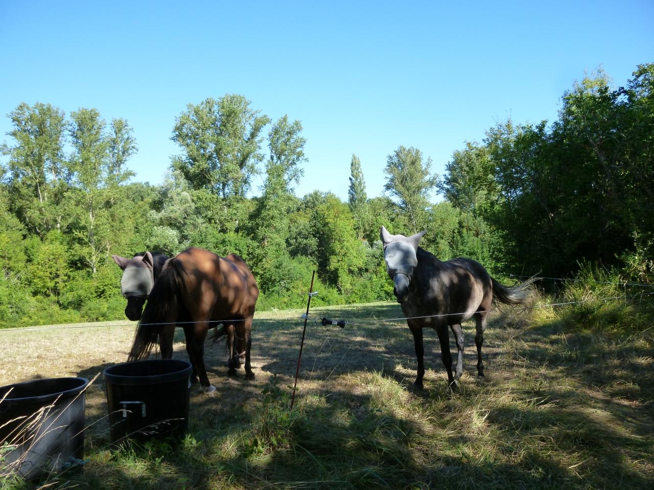 | Dire merci | laure40 mais nooooon, ça ne prend pas longtemps et c'est tellement motivant d'imaginer les jujus déjà dedans en train de faire scrontch scrontch... J'avais le choix entre monter ou faire les deux parcs l'autre soir, honnêtement j'avais vraiment envie de les voir là-dedans et ça ne m'a pas pris plus de temps que de sortir faire une balade En plus c'est trop mimi quand elles savent qu'elles vont déménager, elles me regardent faire puis elles attendent, les yeux rivés sur moi genre "on y va ? on y va ?" puis quand j'arrive elles savent très bien ce qui va se passer et elles commencent toutes à hennir, il y a de quoi faire fondre mon petit cœur d'artichaut irisetquiara39 : ici aussi l'herbe est grillée, mais pas autant qu'au Turel et ça se renouvelle bien plus rapidement ici. J'ai choisi ce pré car il est ombragé et l'herbe a bien repoussé après la fenaison. La présence du ruisseau est bonne pour la pousse de l'herbe, moins pour les bestioles mais bon il y a toujours des avantages et des inconvénients... Elles sont bien équipées avec leurs flymask. Enfin, Doudou a perdu le sien mais je les asperge aussi avec un produit anti-taon donc ce n'est pas si dramatique que ça ![]() |